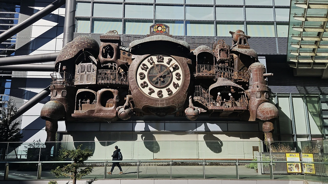 바람이 건물의 표정을 바꾸듯, 시간에 맞춰 움직이는 것도 있다. 도쿄 시오도메 닛폰텔레비전 본사 외벽에 설치된 니텔레 대시계(日テレ大時計)는 애니메이션 감독 미야자키 하야오(宮崎駿)가 디자인한 거대한 기계 시계다. 톱니바퀴와 레버, 작은 인형들이 층층이 얽힌 구조는 『하울의 움직이는 성』을 떠올리게 한다. 정해진 시각이 되면 외벽은 잠시 하나의 무대가 되어, 톱니바퀴가 돌고 인형들이 동작을 펼치며 극적인 퍼포먼스를 만든다. 평소 도시의 배경처럼 서 있던 건물이, 시계의 움직임과 함께 시선을 사로잡는 주인공이 된다. 바람에 맡겨진 모빌과 달리, 니텔레 대시계는 정해진 시간에 맞춰 정확히 움직인다. 계산된 동작은 장면을 더욱 선명하게 드러낸다.