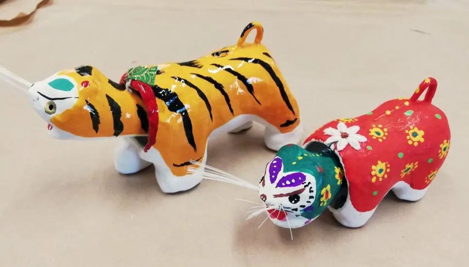 지역 공예와 생활 문화를 소개하는 문화 편집숍 ‘우나기노 네도코(ウナギの寝床·장어의 잠자리)’에서 종이 호랑이 인형을 만났다. 살짝 건드리면 고개를 끄덕이듯 머리를 앞뒤로 움직인다. 일본에서는 이런 인형을 ‘하리코 토라(張り子虎)’라 부른다. 전통 종이공예 ‘하리코(張り子)’ 기법으로 만든 것으로, 머리를 상대적으로 크게 하고 몸통을 비워 무게를 머리 쪽에 싣는다. 두 부분을 연결하면 작은 손길에도 고개가 움직인다. 일본어로는 ‘구비후리(首振り)’ 인형이라 한다.