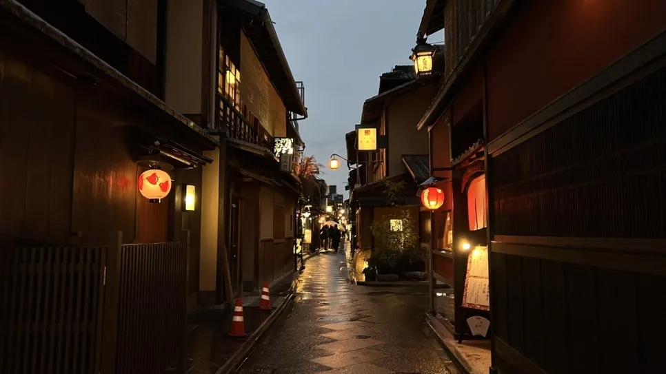 김승옥의『무진기행』에서 “무진에는 안개가 자욱했다”는 문장이 떠오른다. 소설 속 안개가 만든 흐릿한 분위기가, 교토 밤거리의 낮은 조도와 겹쳐진다. 실제로 안개였는지 알 수 없지만, 희미하게 번지는 빛과 부드러운 그림자가 어우러져, 시간이 조금 느려진 듯한 공기가 흐른다.
