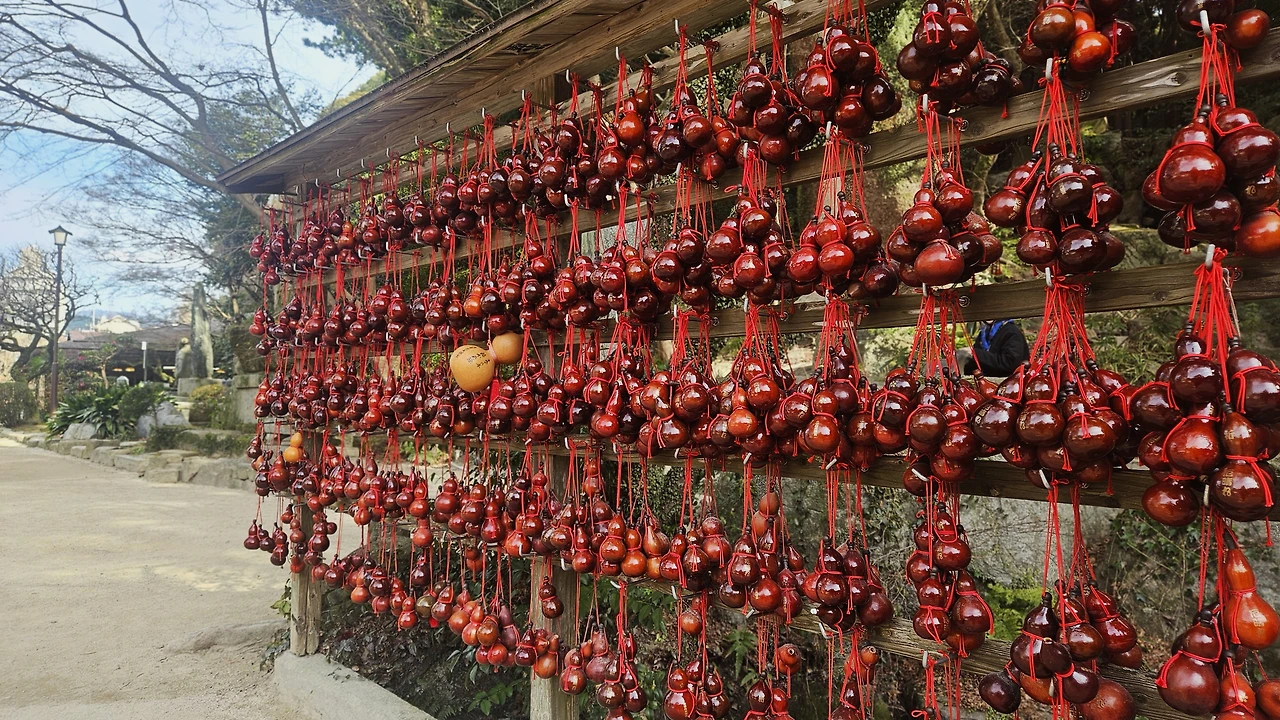 신이 인간의 소원을 모두 들어준다는 믿음만 있는 것은 아니다. 히로시마현 구레 미타라이(御手洗)의 덴만신사(天満神社)에 있는 ‘가능문(可能門)’에서는 문을 지날 때 한 가지 소원만 빌어야 한다. 과도한 욕심을 부리지 말라는 뜻이다. 문은 소망을 허락하되, 한 번에 하나로 제한한다. 신사는 아니지만, 교토 기요미즈데라(清水寺) 본당 아래의 ‘오토와 폭포(音羽の滝)’도 비슷하다. 세 갈래 물줄기가 흘러내리는데 각각 장수, 학업 성취, 연애운을 상징한다. 물을 한 모금 마시려는 줄이 폭포 아래로 길게 이어진다. 보통은 그중 하나만 골라 마셔야 한다고 알려져 있다. 두 줄기까지는 괜찮다는 이야기도 있지만, 세 줄기를 모두 마시면 욕심을 부린 것으로 여겨 굴러온 복마저 달아난다는 말이 따라붙는다.