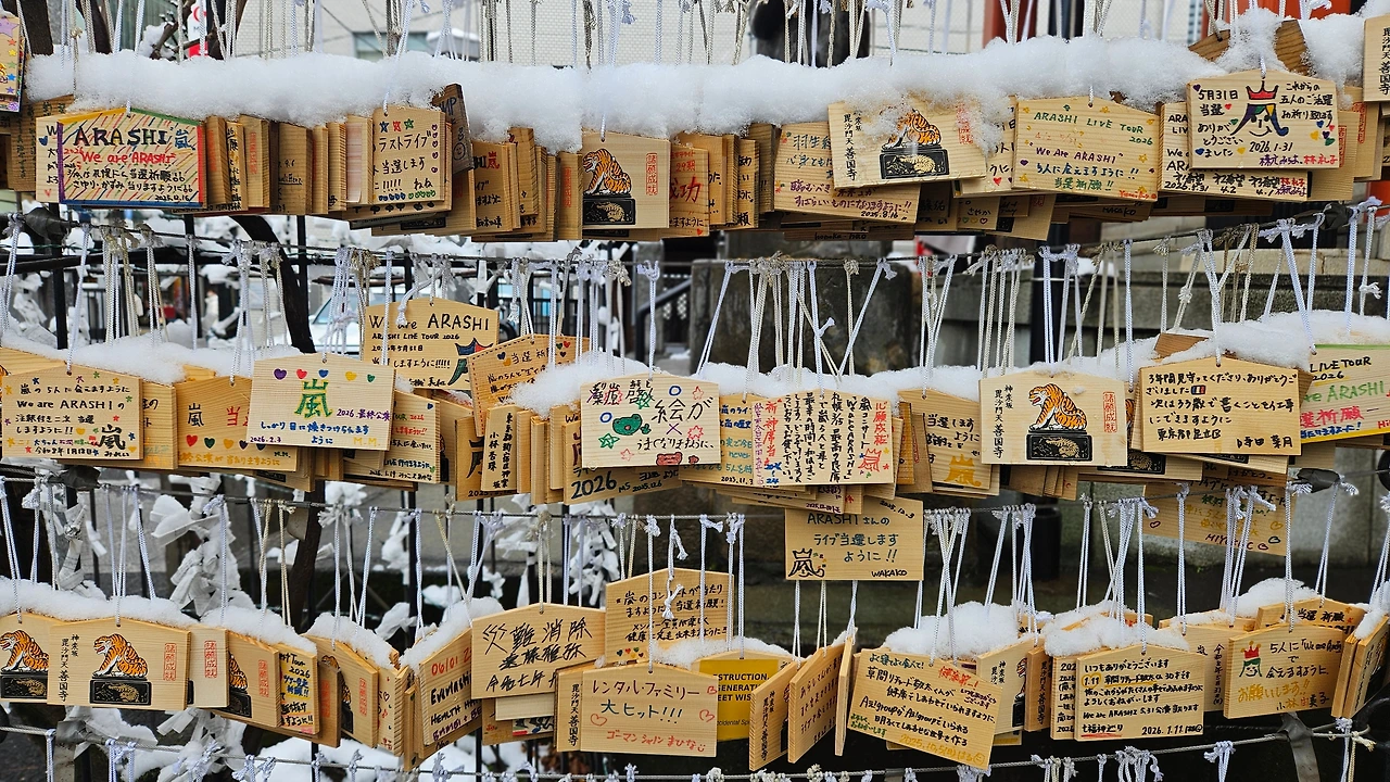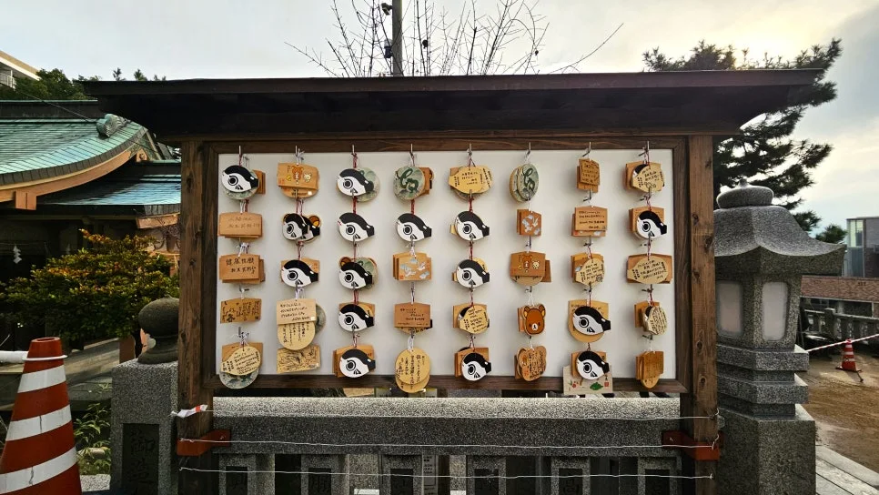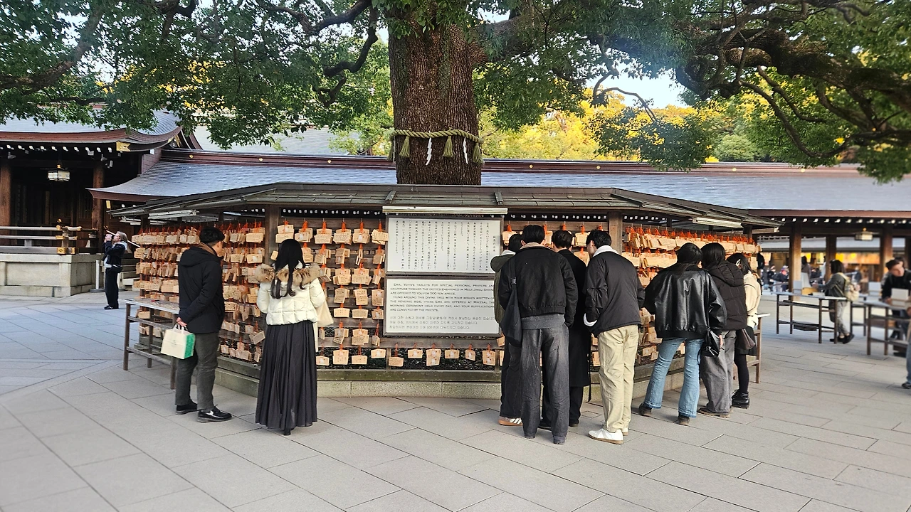 신사에서 빠지지 않는 것이 에마(絵馬)다. 원래 신에게 말을 바치던 풍습에서 유래했지만, 지금은 나무 판에 소원을 적어 봉납하는 형태로 남아 있다. 에마에 소원을 적는 행위는 오미쿠지나 오마모리처럼 눈에 보이지 않는 바람을 물성으로 바꾸어 신에게 전하는 의례다.