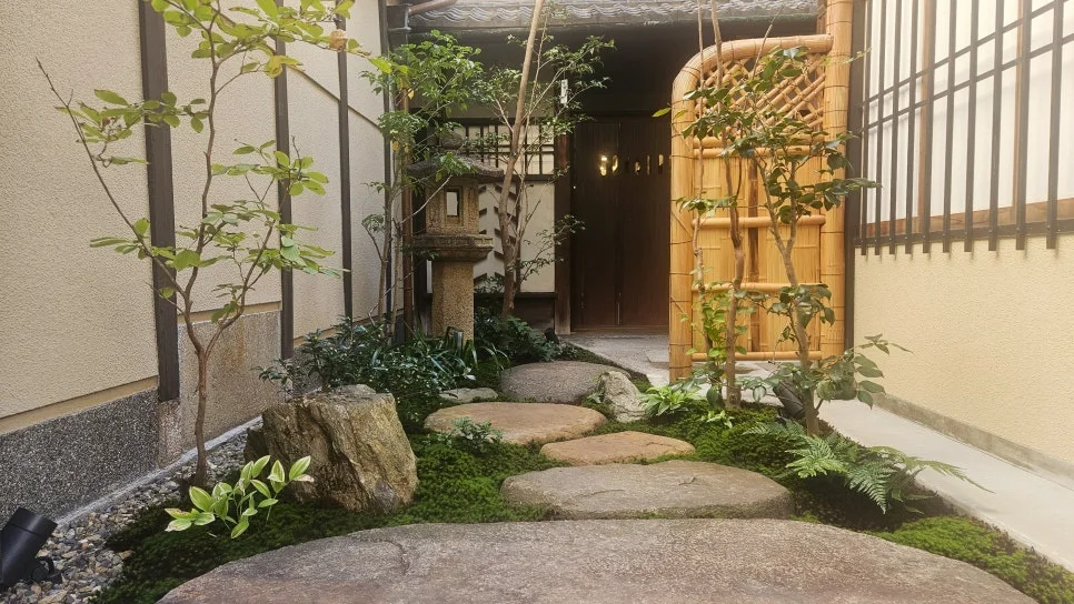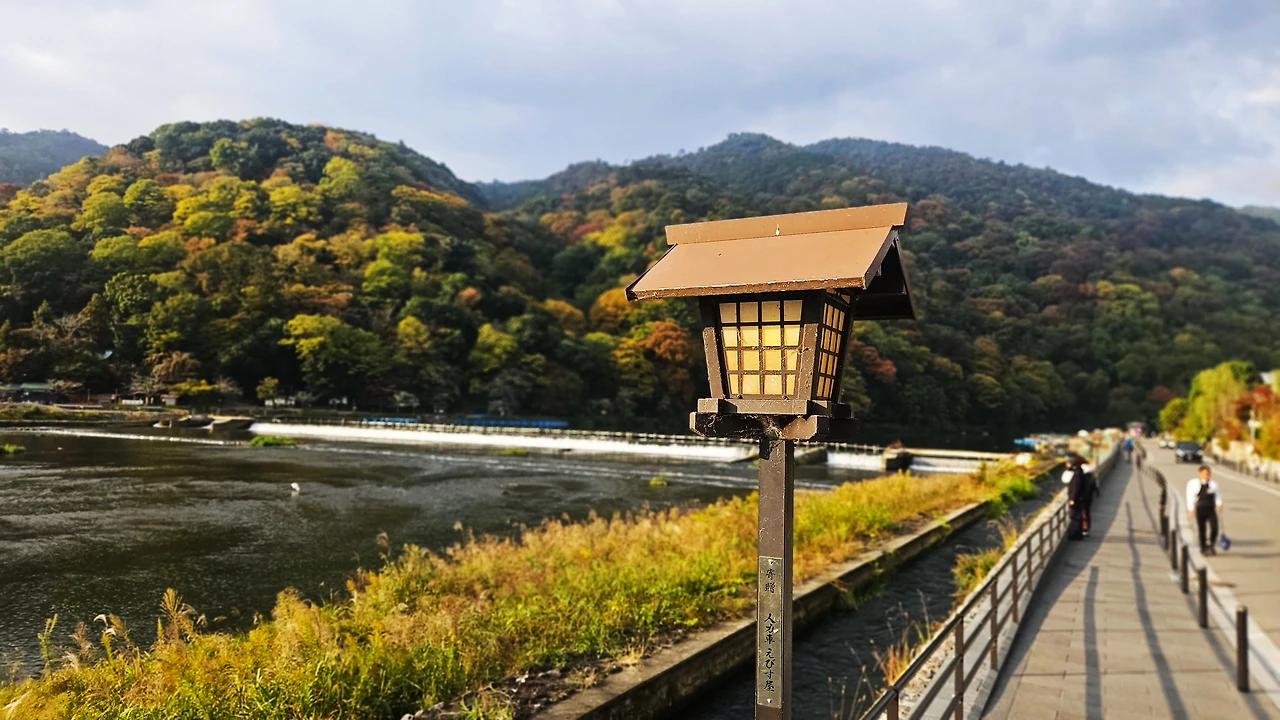 석등이 돌로 중심을 세운다면, 목재로 만든 모쿠세이토로(木製燈籠)도 있다. 아라시야마의 도게츠교(渡月橋)가 가로지르는 가쓰라강(桂川) 변에는 목등 형태의 가로등이 일정한 간격으로 서 있다. 해질 무렵이면 강을 따라 켜지는 불빛이 길 위에 잔잔한 흐름을 만든다. 다리 가까이에 자리한 순백의 큐브를 닮은 % ARABICA Kyoto Arashiyama 카페와 마주한 풍경에서는, 전통과 현대가 한 장면 안에 공존한다.