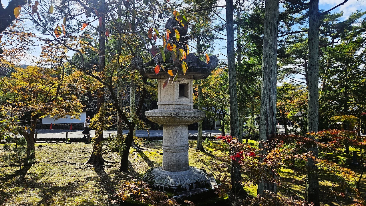 마을 사이로 흐르는 교토 시라카와(白川)의 물줄기를 따라 천천히 걷다 보니, 어느새 난젠지(南禅寺)에 이르렀다. 경내에 들어서면 난젠지의 상징 같은 문, 2층 누각 형태의 산몬(三門)이 먼저 눈에 들어온다. 넓은 기둥 아래를 지나자 이끼 정원이 펼쳐지고, 오른쪽에는 눈에 띄게 크고 묵직한 석등이 자리를 지키고 있다. 낮에는 주변 풍경 속에 스며들지만, 해가 지면 길 위로 부드러운 빛을 드리운다. 걸음을 옮길 때마다 햇살과 나뭇잎 그림자가 석등 표면에 미묘한 변화를 만든다. 그 모습을 바라보며, 어둠 속에서 깨어날 등불을 떠올린다.