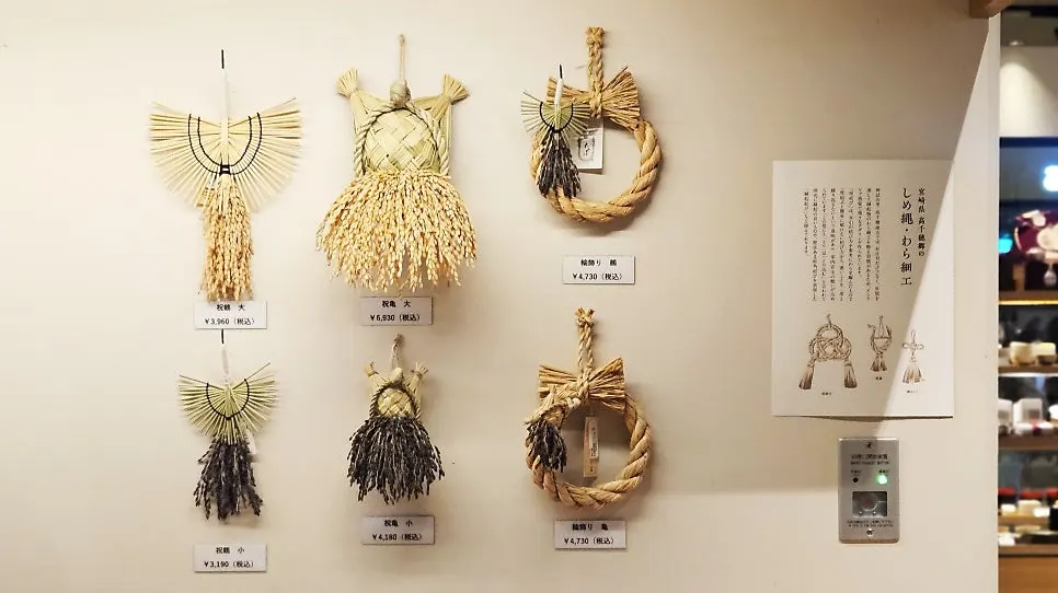 교토에서 보는 시메카자리는 정교한 손길이 돋보인다. 짚과 볏짚을 꼬는 방식이 일정하게 유지되고, 장식들의 배치가 전통적 미감을 따른다. 골목을 따라 집집마다 걸리면, 거리 전체가 새해 장식으로 완성된 풍경처럼 느껴진다. 장식마다 집과 이웃, 공동체의 안녕과 조화를 기원하는 마음이 담겨 있어, 작은 장식에서도 전통과 섬세한 미감이 눈앞에 펼쳐진다.