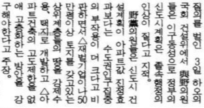 정부의 분당, 일산 신도시 개발 계획 일주일 후, 국회에서는 정부의 신도시계획은 졸속행정 이라며 강하게 비판합니다. 앞선 기사에서 말씀 드린 바와 같이,