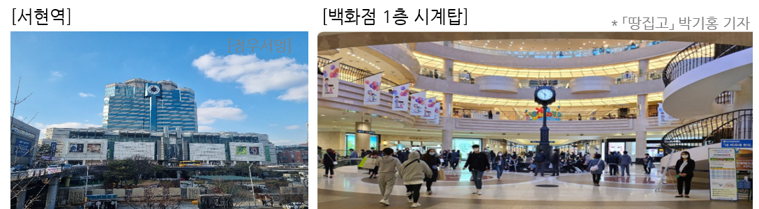 특히, 주말에는 굳이 차를 타고 나갈 필요 없이, 서현역 주변으로, 가족끼리 도보로 이동합니다. 서현 역사에 위치한 백화점 1층 시계탑은 미팅 장소로 자주 활용되는 랜드마크 역할을 하는 장소입니다.