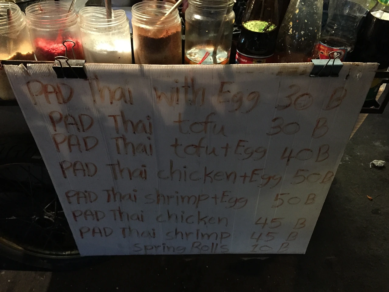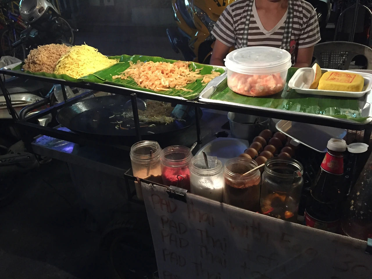 가장 먼저 팟타이 노점이 눈에 들어왔다. 재료를 한가득 쌓아놓고 볶아주는 팟타이는 30에서 50밧 사이. 한화로 2000원이 채 되지 않는다. 길거리 음식이니 테이블도 따로 없이 젓가락을 받아 들고 근처에 서서 순식간에 한 그릇을 비웠다. 기대만큼 놀라운 맛은 아니었지만 허기를 달래기에는 충분했다. 거리를 둘러보면서 자른 망고도 한 컵 사 먹고, 얼마 지나지 않아 꼬따오로 가는 2층 버스에 올라탔다.