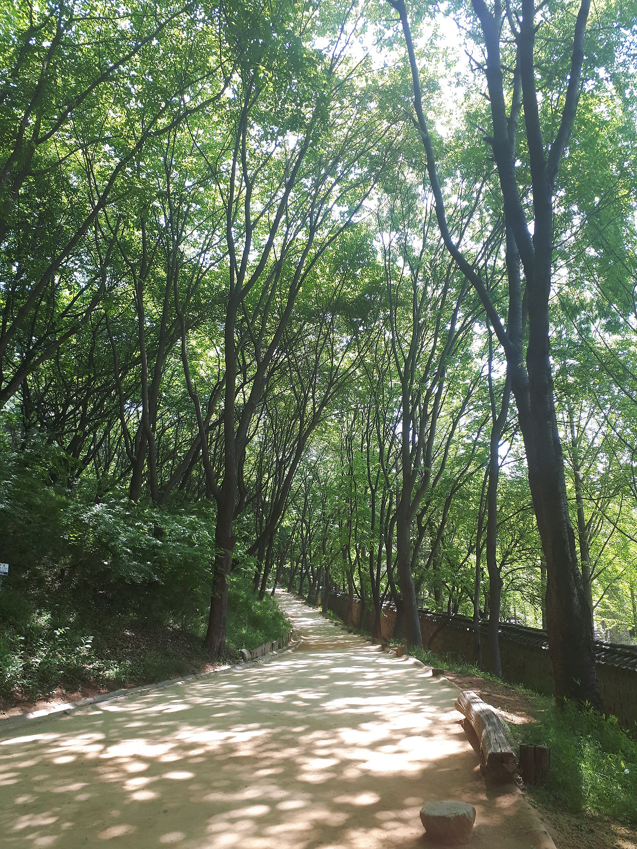 이게 뭐지하면서 걷다가 울창한 숲길에서 이게 힐링이구나 싶다. 사람도 없고 오직 울창한 숲길만이 마치 레드카펫마냥 날 위해 준비했다는 듯이 내 눈앞에 펼쳐진다. 중간에 커다란 등받이나무가 길을 가로막는다.