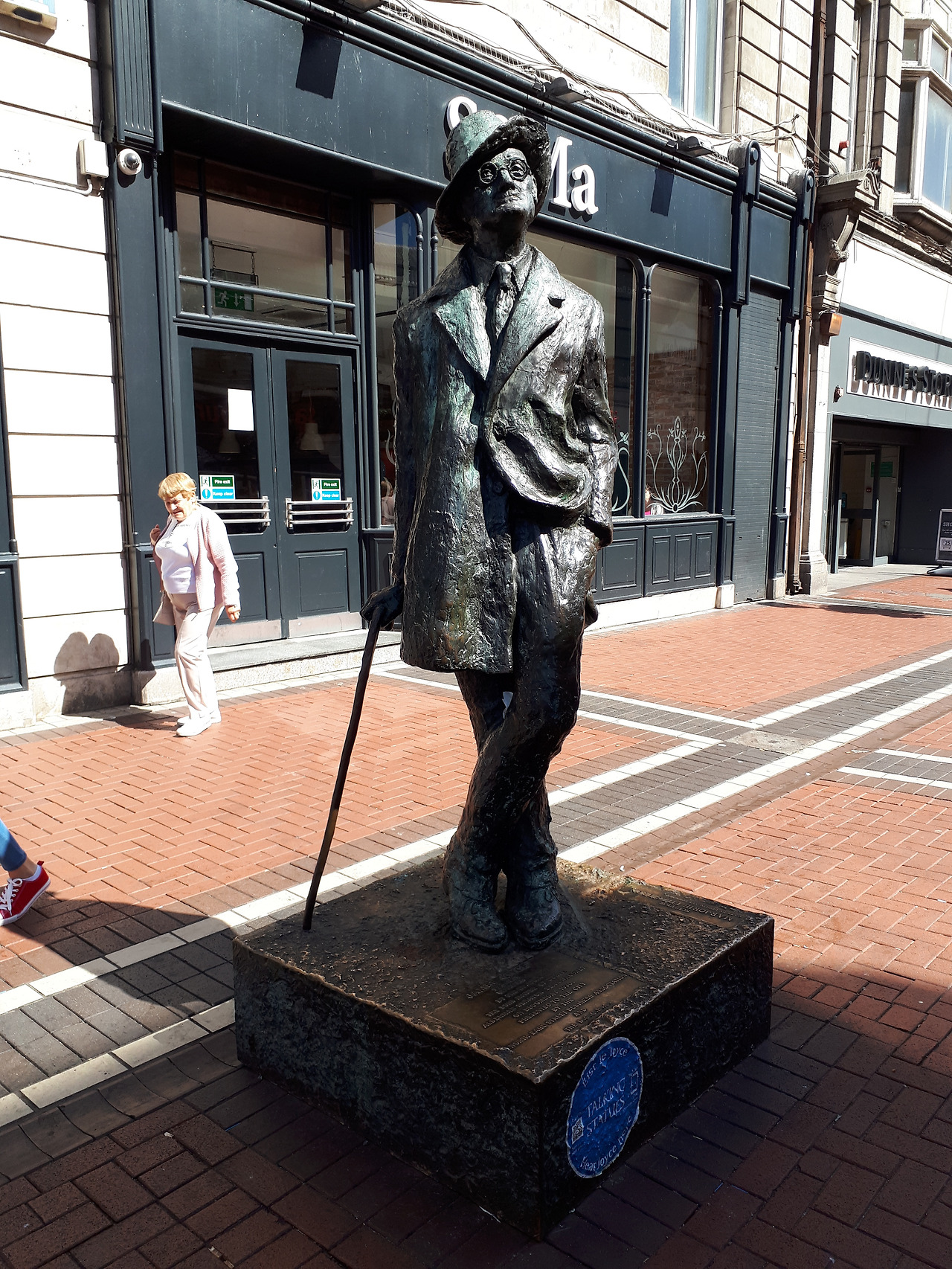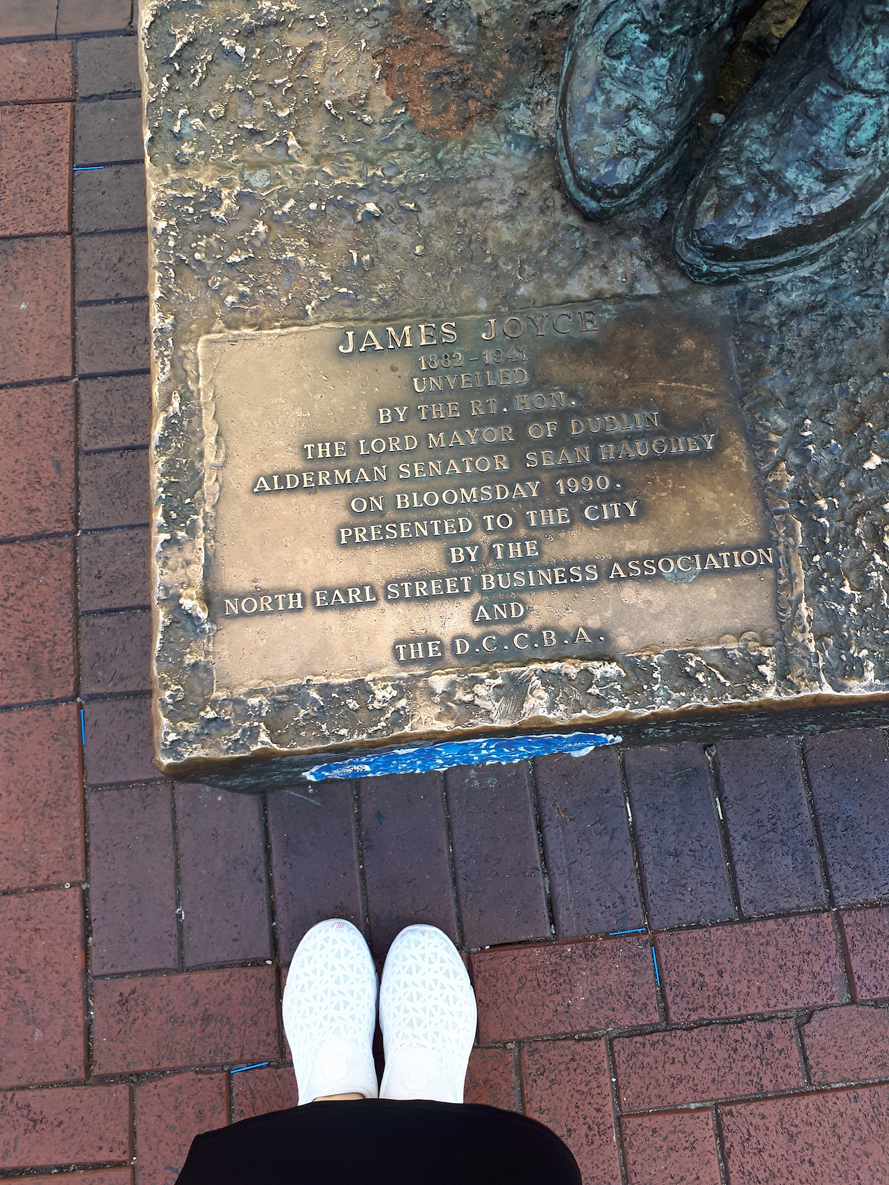 1990년 블룸스데이에 제막해서 시에 기증되었단다. 블룸스데이는 제임스조이스의 대표적 소설 '율리시즈'의 주인공 레오퍼드 블룸이 1904년 6월 16일 하루 동안 이 더블린 시내를 돌아다니며 일어나는 일들을 호머의 일리아드 오딧세이, 대서사시에 빗대어 그 유명한 의식의 흐름 기법으로 써내려갔다. 즉 문학과 심리학의 융합으로 어디까지가 팩트이고 어디까지가 생각인지가 이해하기 힘든 소설이기도 하다. 이미 그것마저도 제임스는 예상하고 마치 알아맞춰보시롱~~하고 독자에게 과제를 준다.