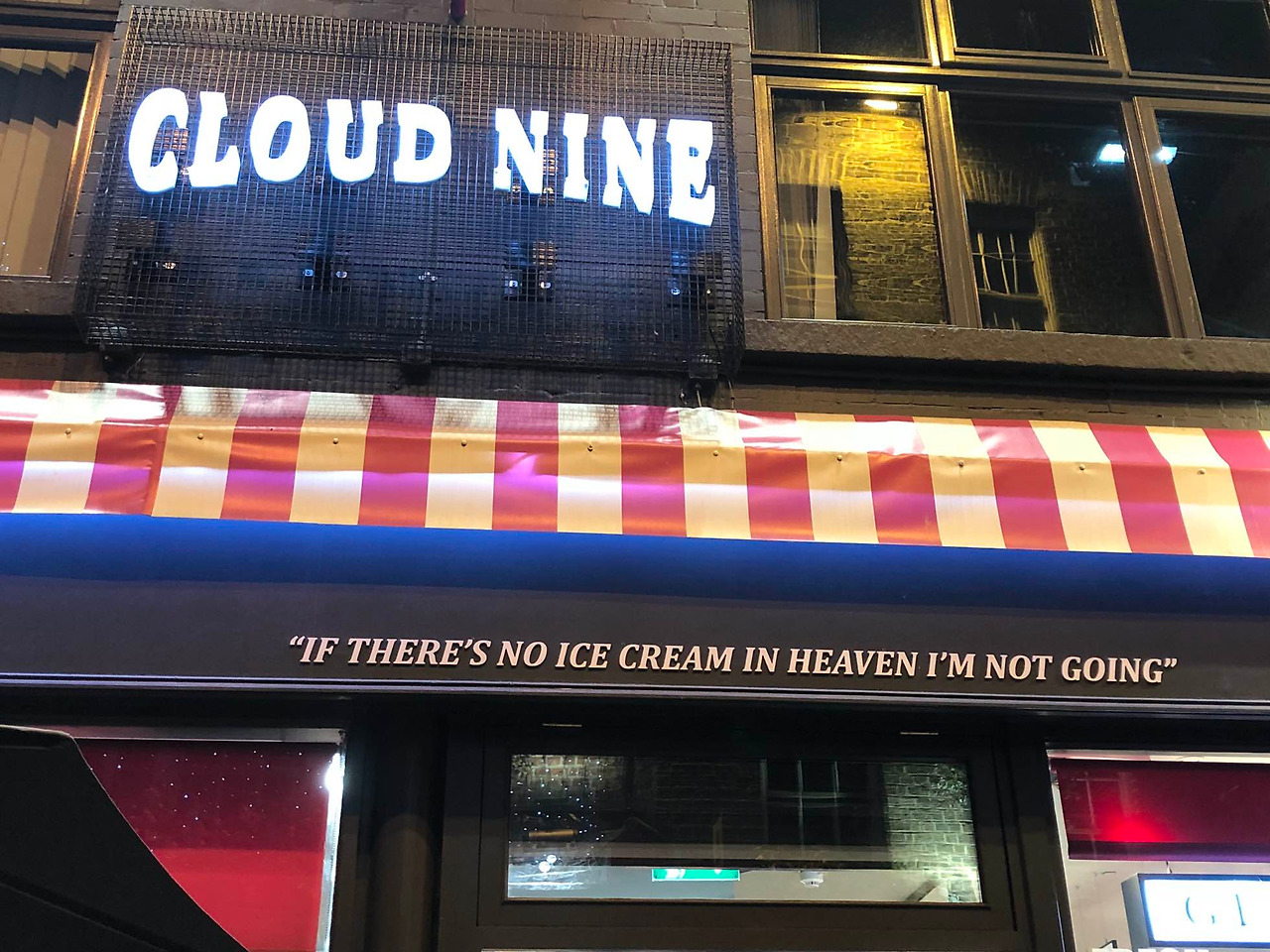영어 교과서에도 나오는 이 표현이 아이스크림 가게 이름이다. 우리도 기분이 좋으면 구름위를 난다고 하지 않는가? 기분이 가장 좋을 때 영어로 I'm on cloud nine.라고 한다. 천국에 아이스크림이 없다면 난 가지 않을 거다. 천국이 10이라면 난 차라리 이 아이스크림을 먹으며 cloud 9에서 행복하겠다라는 뜻으로 해석해본다.