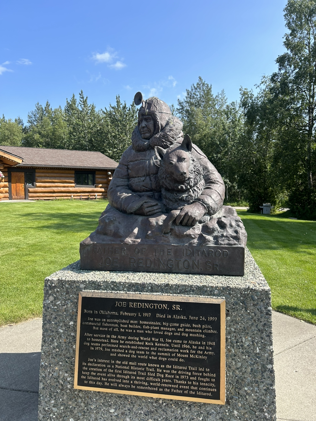 개썰매본부앞에 세워진 개썰매의 창시자 동상과 애니메이션으로도 만들어진 유명한 개, Balto!