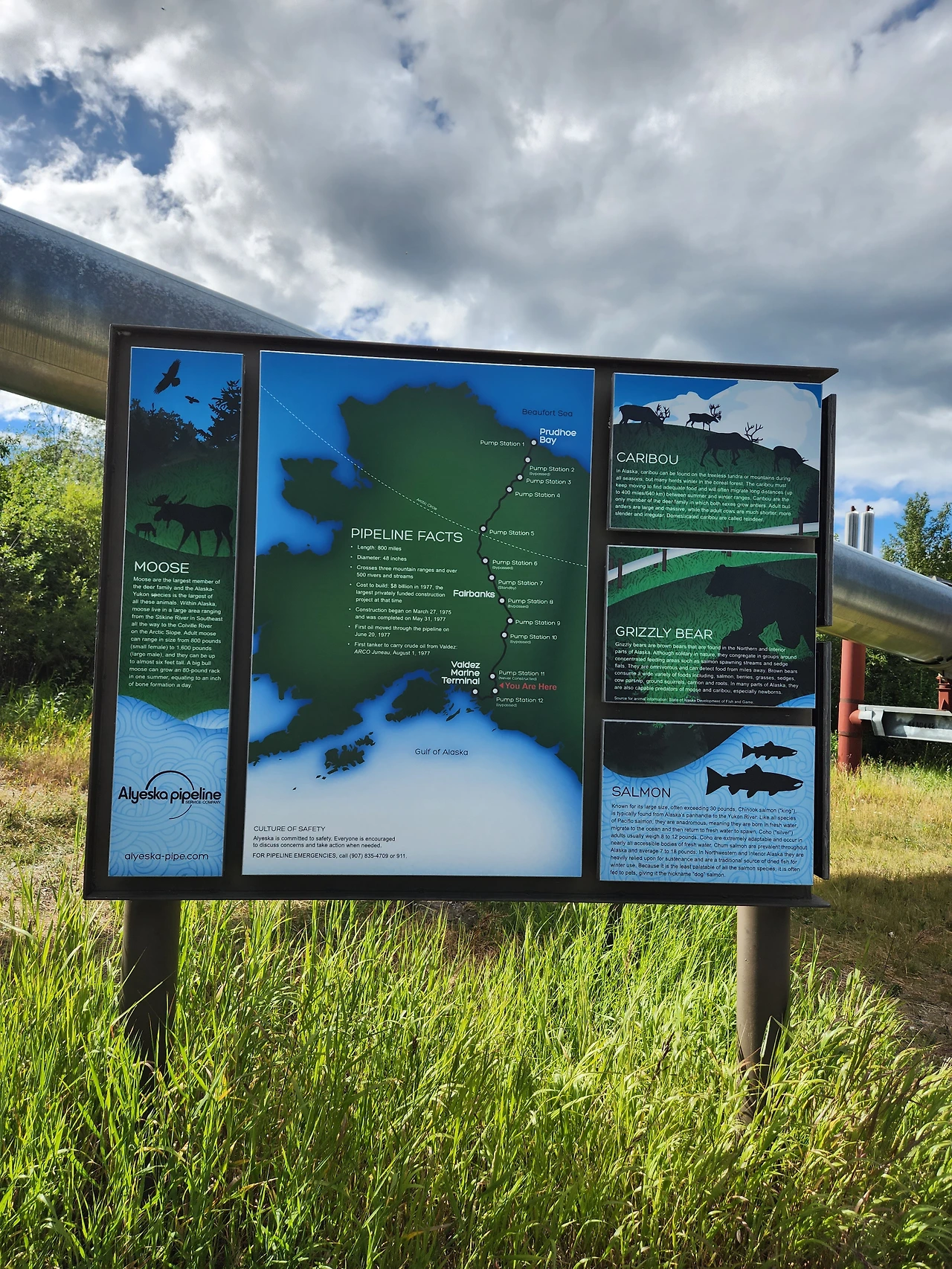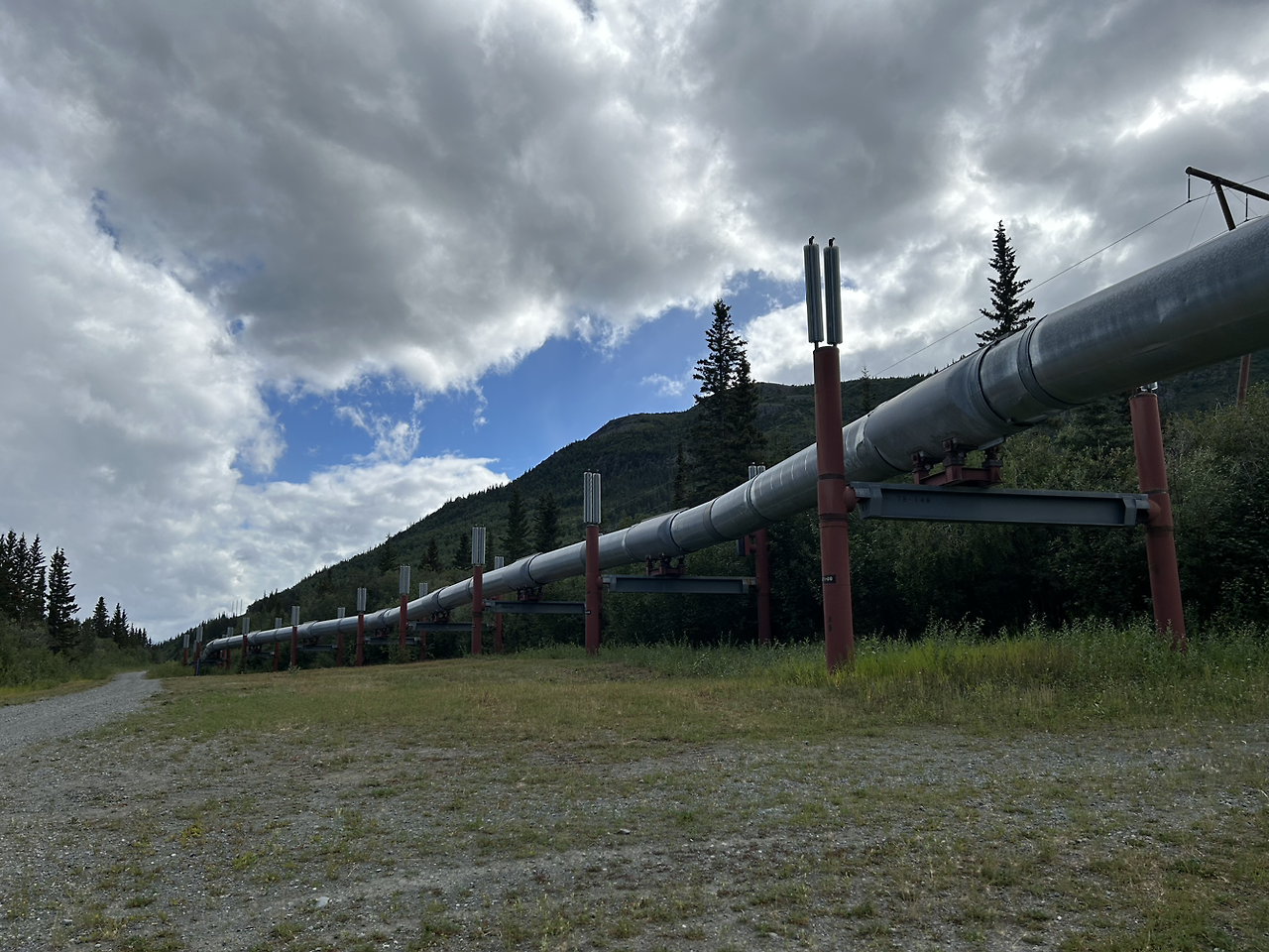 알래스카 북부에서 남부 발데즈항까지 연결되는 석유 수송관. 지진도 있고 원유의 점도가 높아 경사진 내리막길은 지하매설하고, 오르막은 이렇게 지상으로 설치해뒀다.