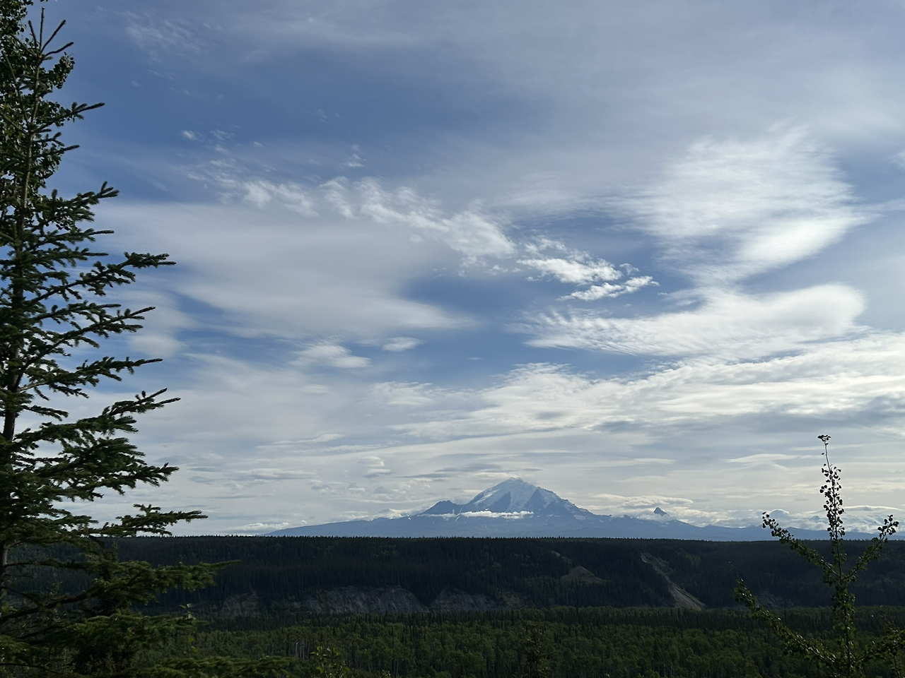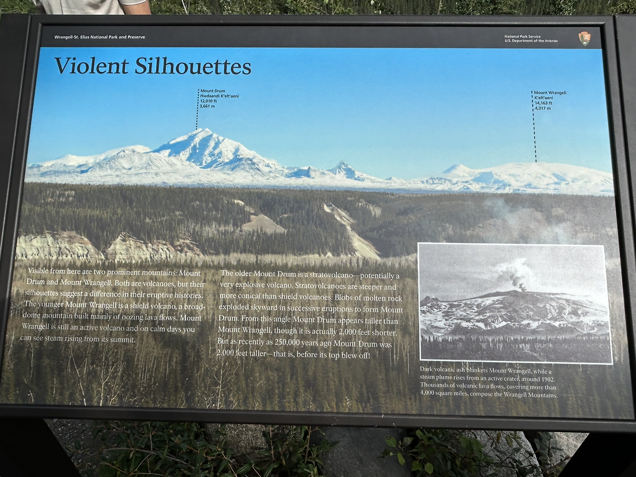 랭겔 세인트 엘리어스 국립공원 방문자센터에서 바라본 마운트산과 활화산인 랭겔산, 오른쪽에 육안으로는오히려 낮아보이는 랭겔산이 왼쪽 마운트산보다 실제 2000피트정도 더 높으며 랭겔산의 꼭대기는 흔히 우리 한국 사람들이 말하는 3대가 덕을 쌓아야지만 볼 수있을 정도로 날씨와 운무로 보기 힘들다 한다.