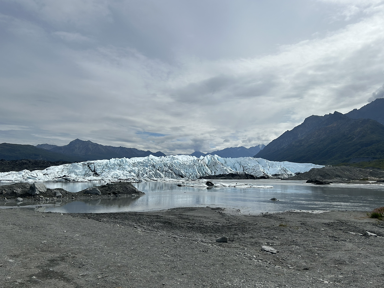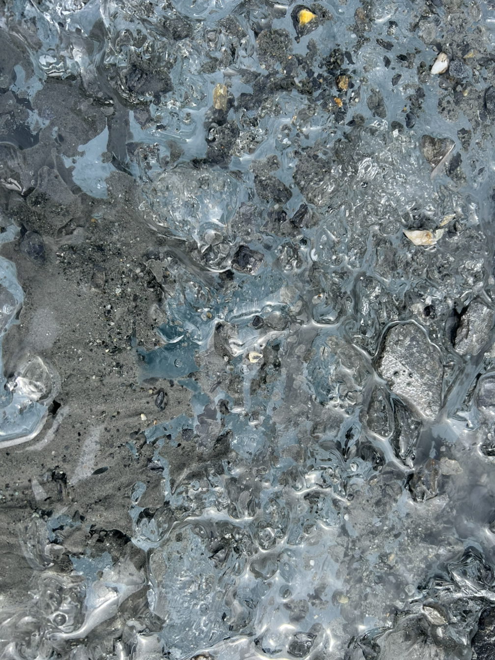 아쉬운 마음에 빙퇴석이 녹은 빙하에, 걸쭉한 회색시멘트물처럼 고여있는 곳에 손을 가져다 대보니, 부드러운 머드팩을 만지는 듯한 촉감이었다. 혹시 모를 엄청난 세월과의 조우였을지도 모른다.