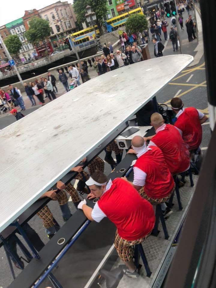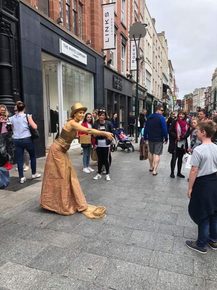 더블린에서 주말의 모습은 더욱 활기차다. 물론 관광객들이 한 몫을 한다. 빨간 옷을 맞춰 입고 도로를 차지하고 음악에 맞춰 열심히 발을 구르고 있다. 크래프턴 스트리트는 버스킹 이외에도 길거리 공연이 많다.