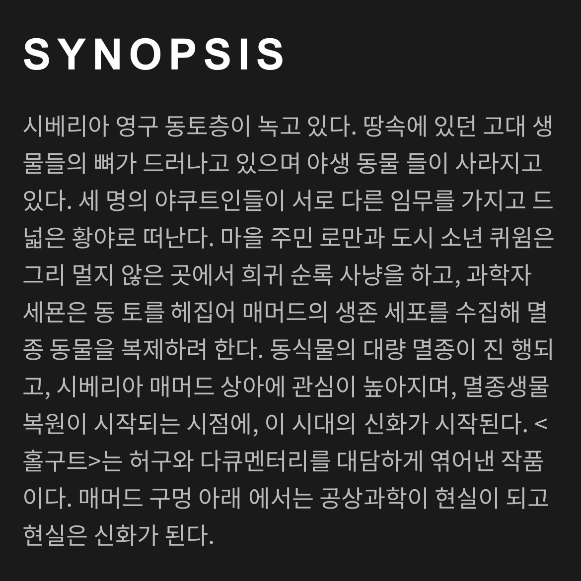 영구동토층 한가운데 ‘홀구트‘라 부르는 거대한 맘모스가 살아 있다는 상상이다.