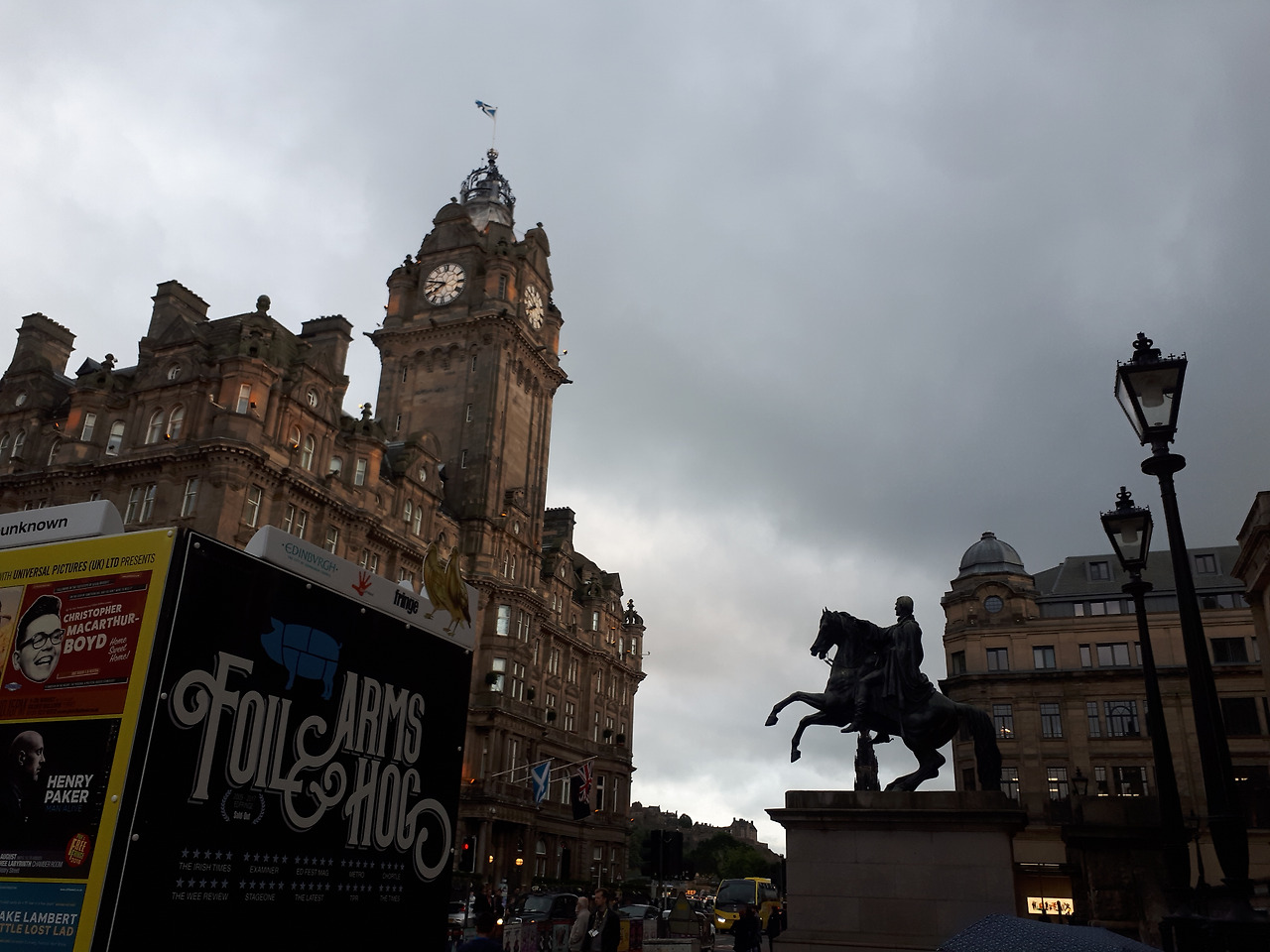벨모럴 호텔 앞에 웨이블리( Waverly) 동상이 저녁 노을을 배경으로 말을 타고 멋지게 서 있다. 웨이블리 동상 뒤가 바로 에딘버러 기차역이다.