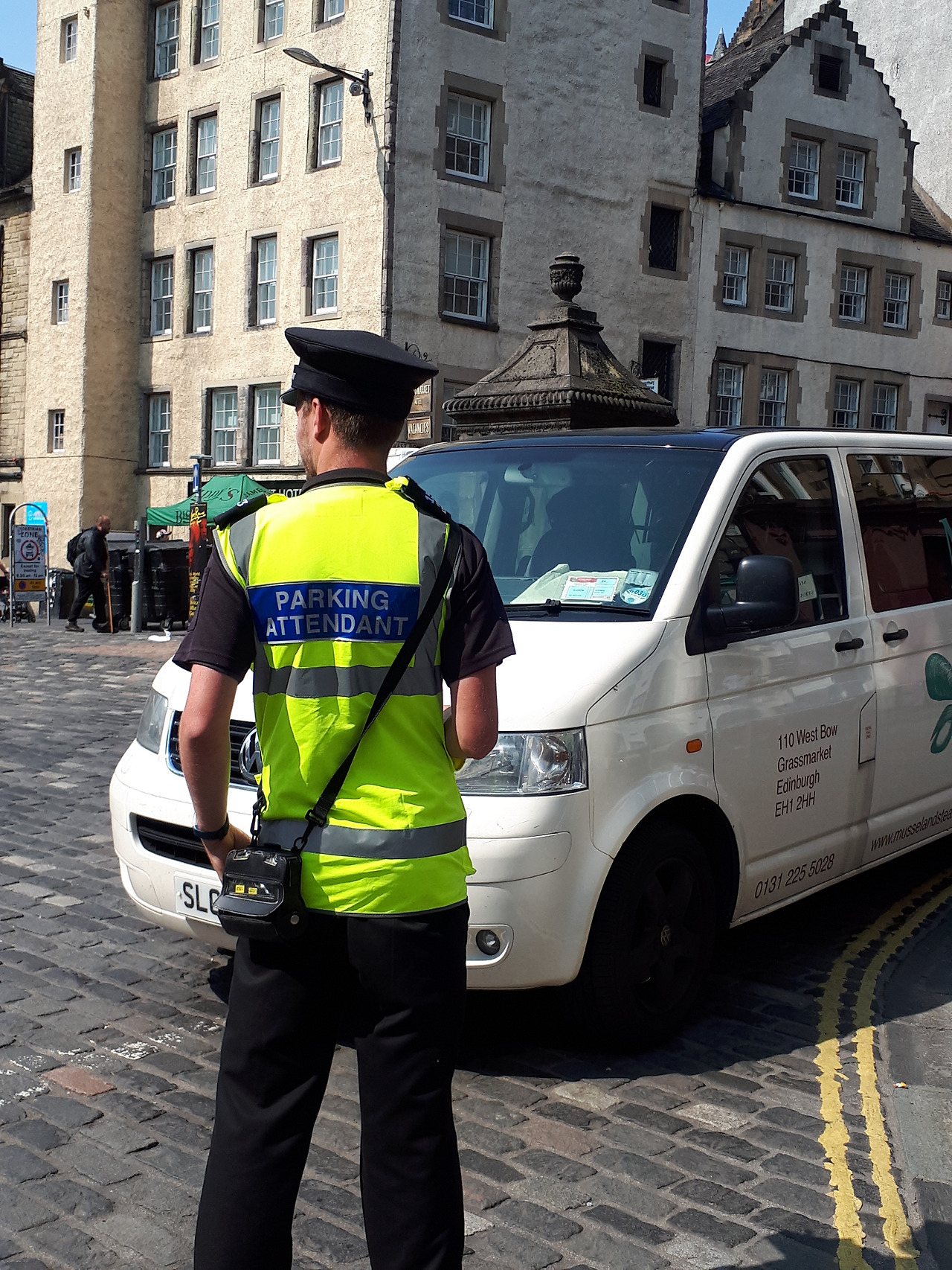 해리포터 뮤지엄 컨텍스트가 있는 빅토리아 스트리트, 경찰인 줄 알았는데 주차요원이다.