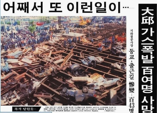 이후 가스가 인근 하수구를 통해 지하철 공사장으로 유입돼 원인미상의 불씨에 의해 폭발했고 폭발음과 함께 50m의 불기둥이 치솟으면서 등굣길 학생 43명을 포함해 101명이 사망하고 202명이 부상을 입었으며 차량 통행을 위해 공사장 위에 임시 설치한 복공판 400m가 무너진 것은 물론 건물 346채, 자동차 152대가 파손되어 당시 피해액은 540억 원에 달할 정도의 대형사고였다.