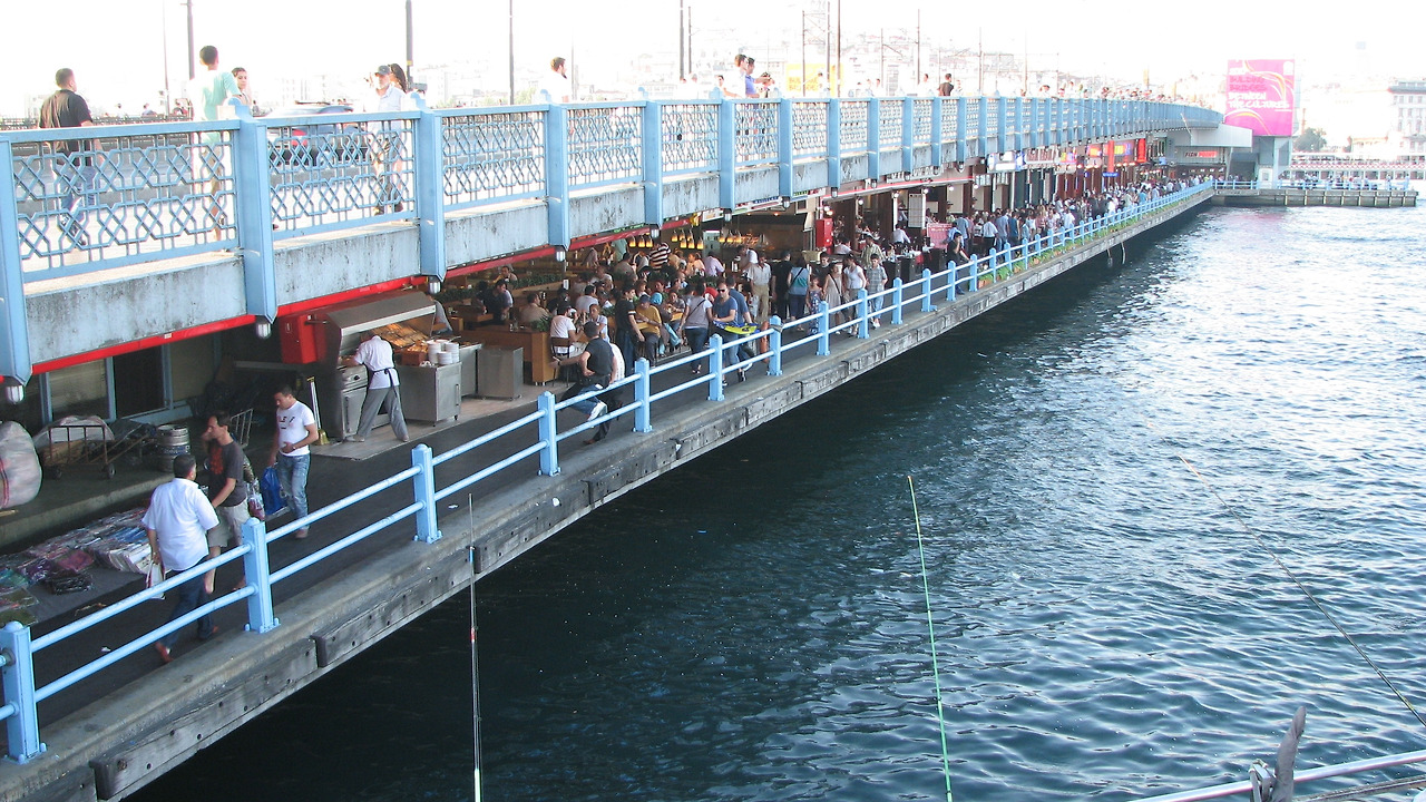 갈라타 다리는 이스탄불의 구시가지와 신시가지를 연결해 주는 가교 역할을 하는 다리로, 유럽과 아시아 대륙을 구분하는 보스포루스 해협을 한눈에 볼 수 있는 곳에 위치해 있다. 갈라타 다리는 강을 건너는 용도로만 쓰이고 있는 평범한 다리가 아니다. 우선 다리 구조가 좀 독특하다. 다리가 위아래로 구성되어 있는데, 아래쪽에는 식당이 즐비하다. 강을 바라보며 식사를 즐길 수 있기 때문일까. 식당은 언제나 사람들로 붐비고 있다.