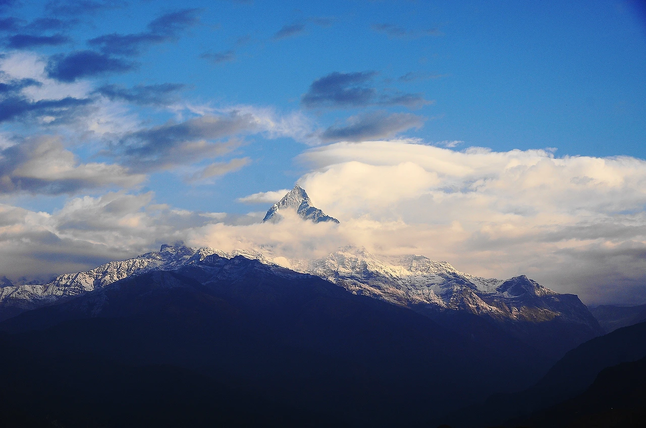 푼힐 전망대에서 보던 히말라야 설산 풍경은 지금도 잊을 수가 없다. 정면엔 산스크리트어로 '하얀 산'을 뜻한다는 다울라기리(8167m)가 병풍처럼 펼쳐져 있었고, 오른편엔 안나푸르나 남봉(7219m)과 마차푸차레(6993m)가 보였다. 마차푸차레는 물고기의 꼬리(피시 테일)라는 별칭으로도 불리는데, 정말 아름답게 생긴 봉우리다. 네팔 정부에서는 마차푸차레는 신이 사는 신성한 산이기 때문에 등반 허가를 내주지 않고 있다고 한다. 그래서 지금까지 저 산을 오른 사람은 아무도 없다고 한다. 그래서일까 보면 볼수록 신비한 느낌이 드는 산이다.