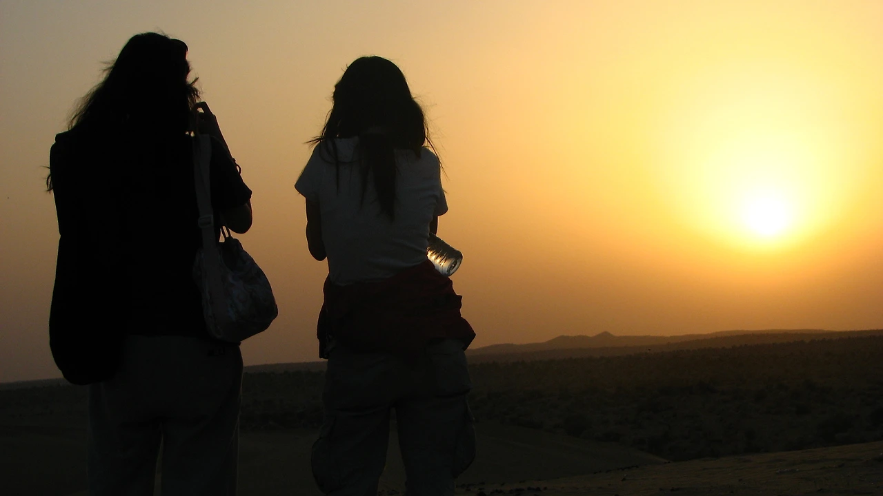 해가 지자 모래 언덕에 앉아 한껏 노을에 취해 있던 여행자들은 엉덩이에 묻은 모래를 털어내고 서서히 자리에서 일어난다.