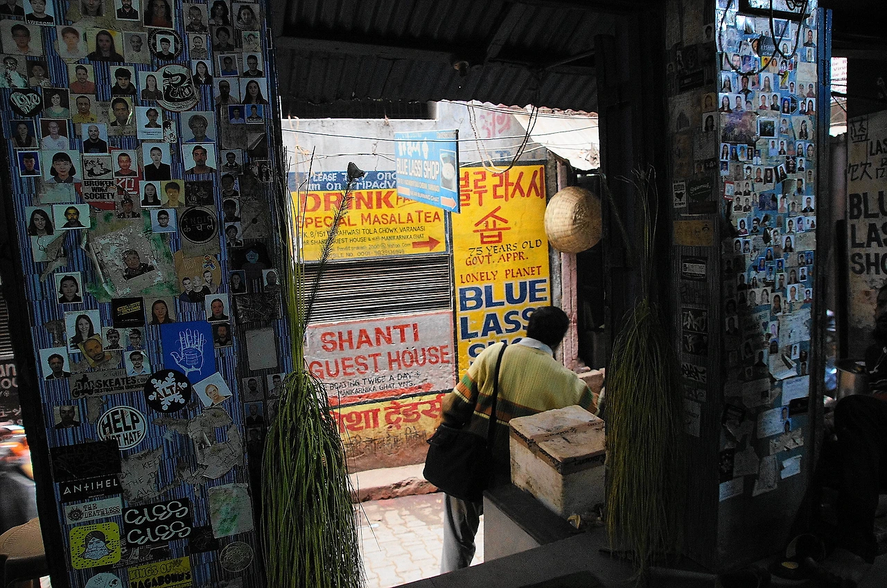 바라나시는 라씨 가게가 유명하다. 그중에서도 블루 라씨라는 곳은 한국인들이 많이 찾는 가게로 잘 알려져 있다. 불루라씨 숍이라고 한글로 적혀 있는 걸 보니, 한국인들이 많이 찾긴 하다 보다. 블루 라씨 숍 벽면은 손님들의 사진으로 도배가 되어 있었는데 내 눈에는 왠지 약간 으스스해 보였다.