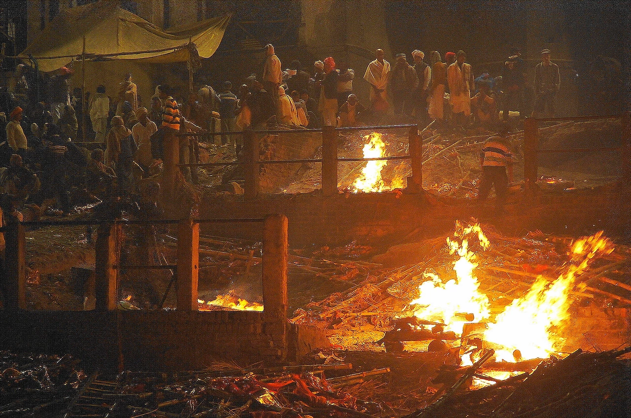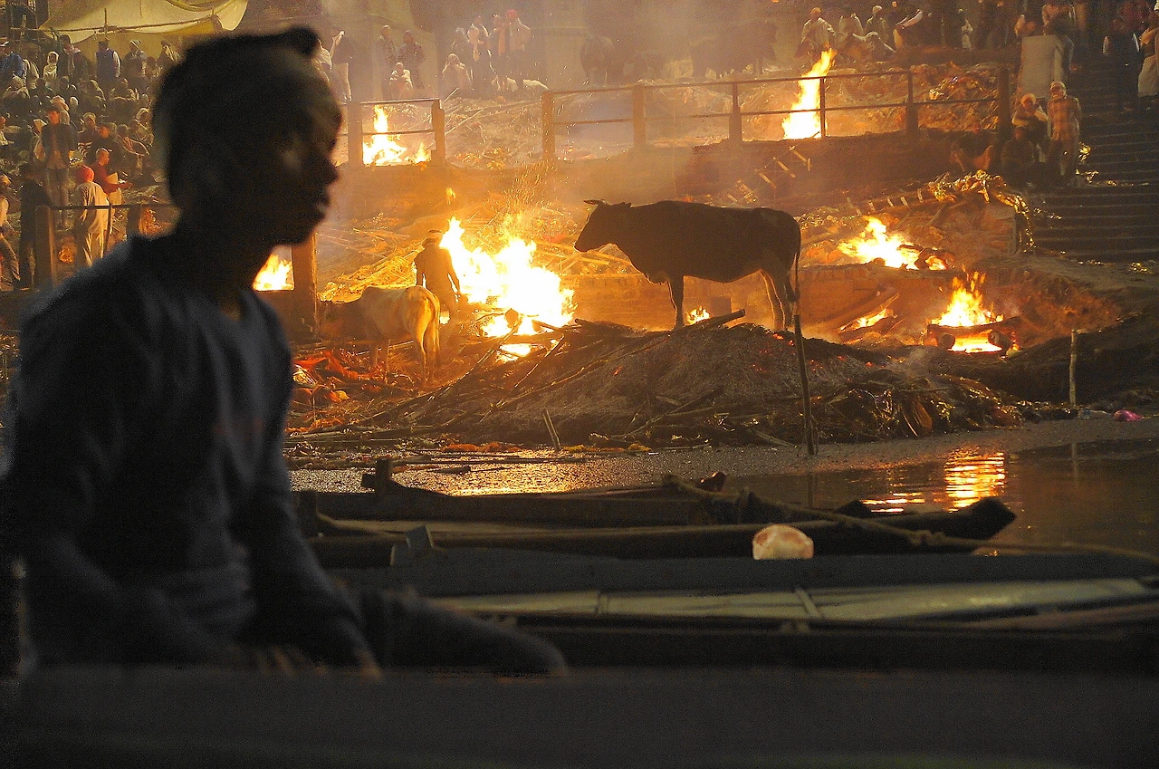 화장터 부지는 십여 구의 시신을 동시에 화장할 수 있는 정도의 크기였다. 내가 찾았을 때에는 빈자리를 찾아보기 힘들 정도로 모든 화장터 자리가 차 있었다. 이제 막 화장을 시작한 상주는 불씨를 붙여 들고 시신을 몇 바퀴 돌고 있었다. 지금 상주가 들고 있는 저 불은 바라나시의 한 사원에서 모시고 있는 ‘꺼지지 않는 불’에서 얻은 불씨다. 상주는 불의 신(아그니)에게 망자를 받아달라는 노래를 부른 뒤, 망자를 안치해 놓은 장작에 불을 붙였다.