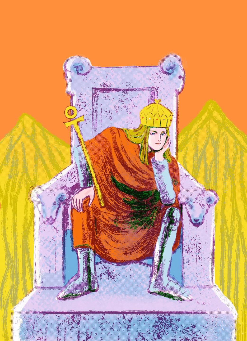 황제 카드의 메시지는 이것이라고 생각합니다. 다만 그 안에서도 여유와 휴식과 즐거움을 찾기를 바라는 마음에서 저는 원작을 비틀어 살짝 이완된 자세로 보주를 내려놓고 편히 앉아 미소 짓는 황제의 모습을 그렸습니다.