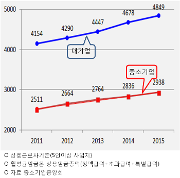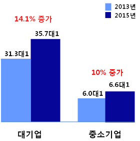 전체 평균임. 2016년 기준으로는 대기업, 중소기업 모두 훨씬 더 높아졌을 것으로 추정