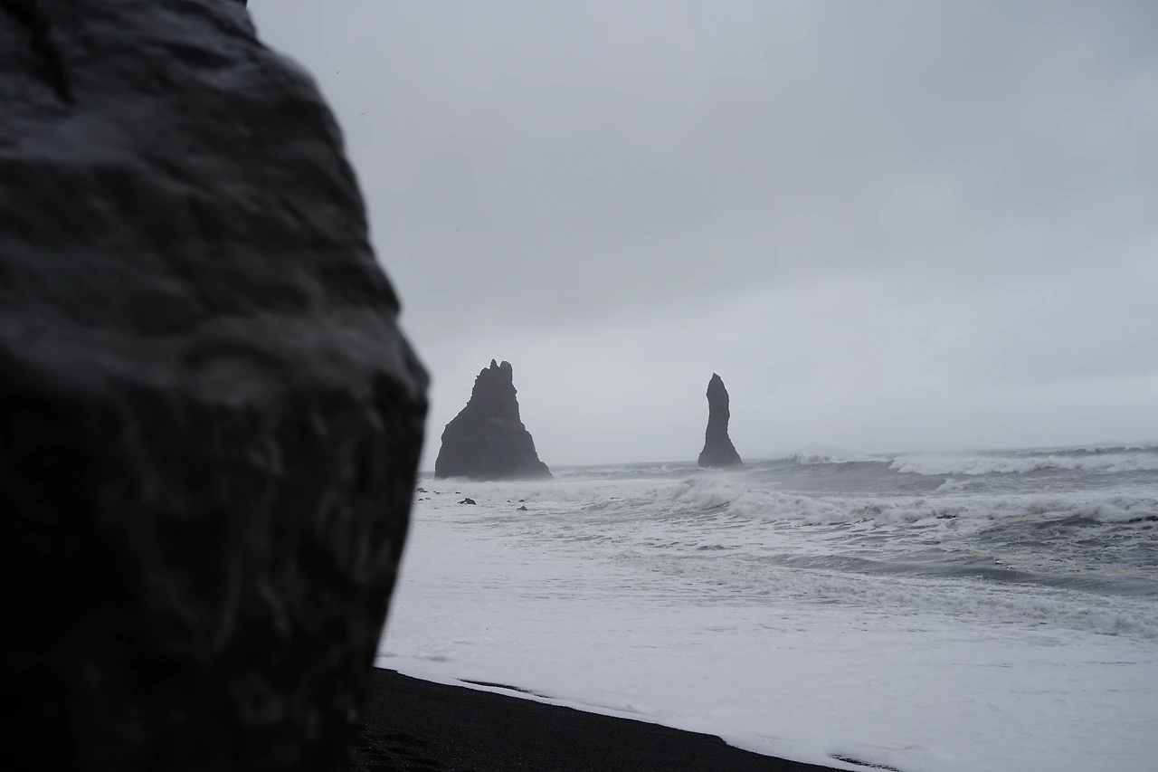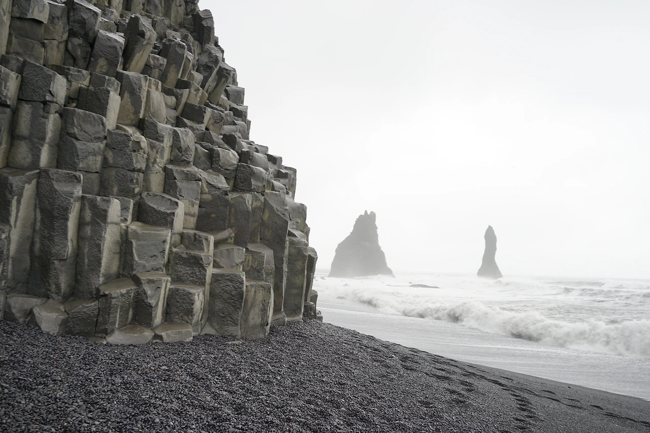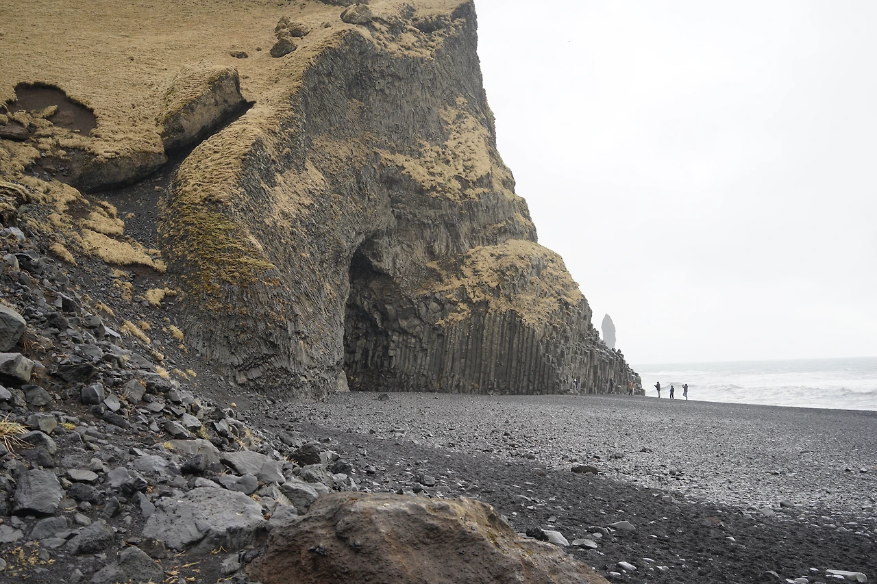 바위 반도 디르홀레이에서 내려다보이는 작은 까만 조약돌로 이루어져 있는 검은 해안은 네모기둥의 돌을 불규칙적으로 쌓아놓은 듯한 주상절리로 둘러 싸여 있으며, 해안 건너편으로는 바다 위에 우뚝 서있는 모습의 거대한 현무암 기둥 레이니스드란가르(Reynisdrangar)도 볼 수 있다.