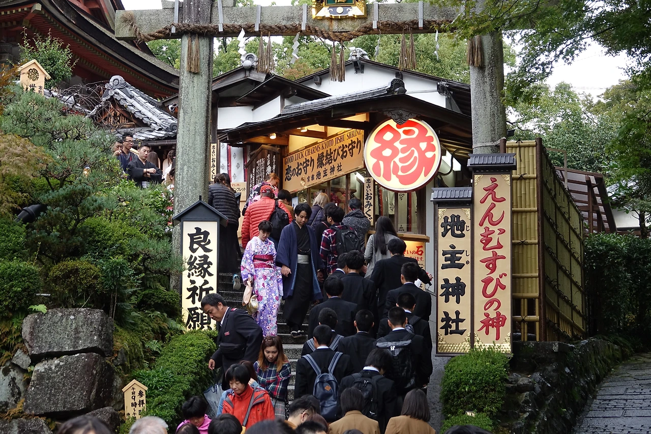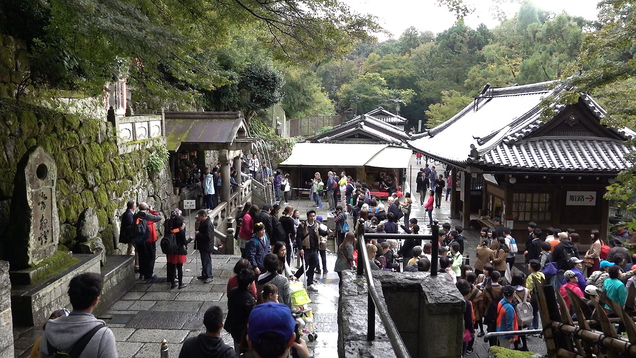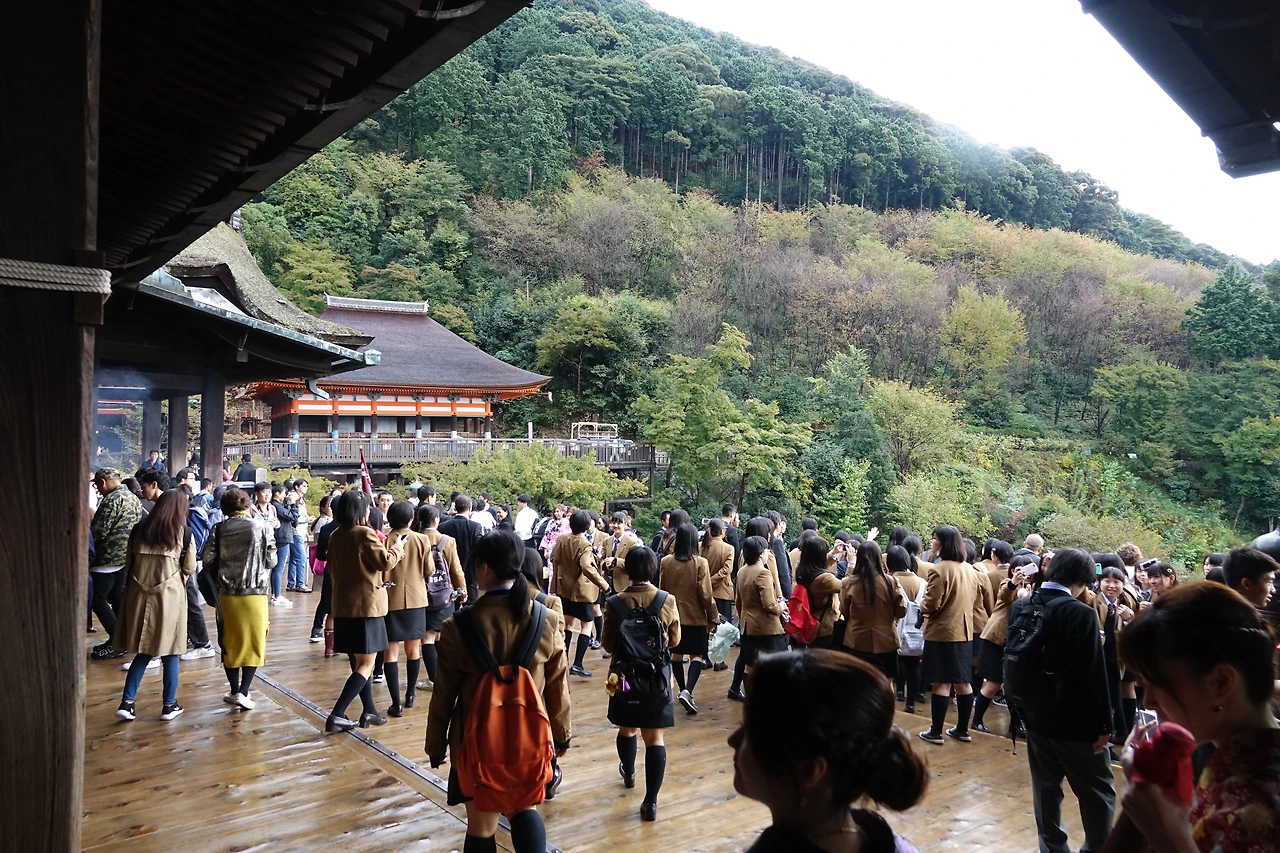 키요미즈데라는 오토와산 절벽 위에 있는 사원인데요, 탁 트인 전망과 지슈진자라는 돌이 명물이라 하네요~