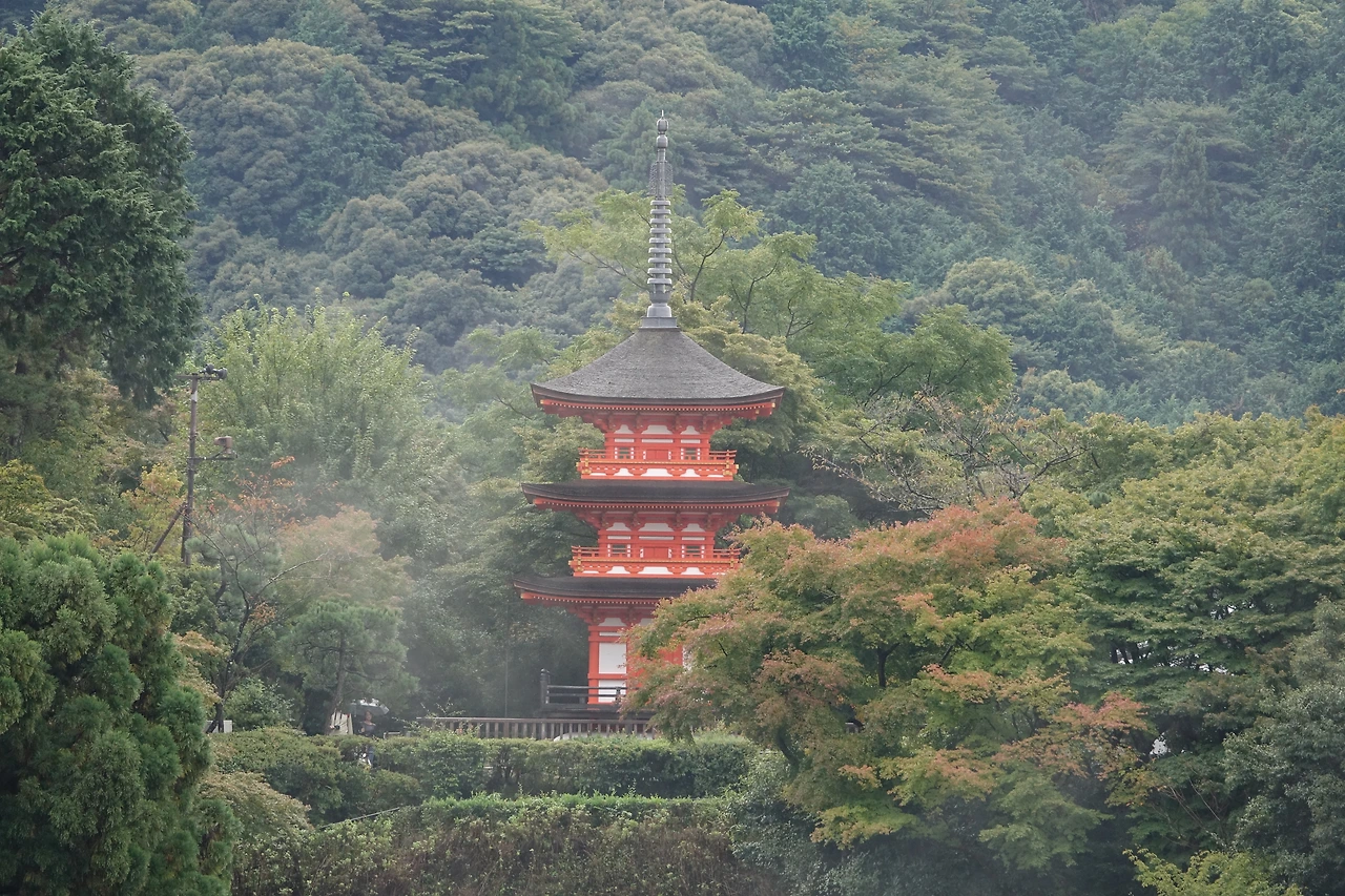 기요미즈[淸水]사는 '성스러운 물'이라는 뜻이다. 본당 툇마루는 못을 쓰지 않고 172개의 나무 기둥으로 만들어져 있다. 깎아지른 절벽 위에 위치한 툇마루에서 바라보는 교토 전망이 일품이다. 이 아래에는 물을 마실 수 있는 작은 폭포가 있다.