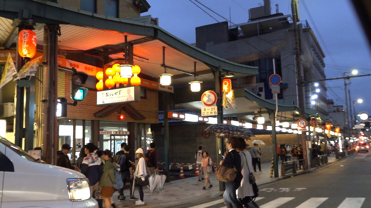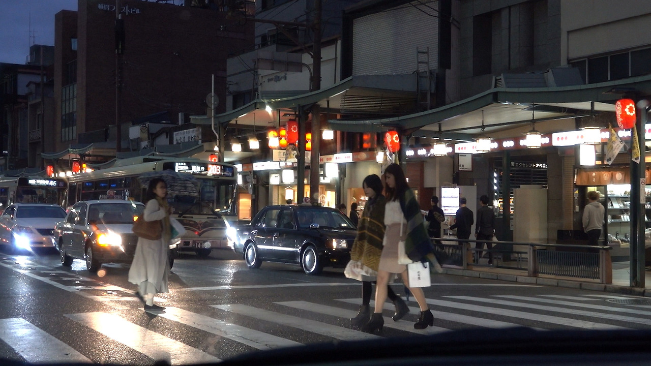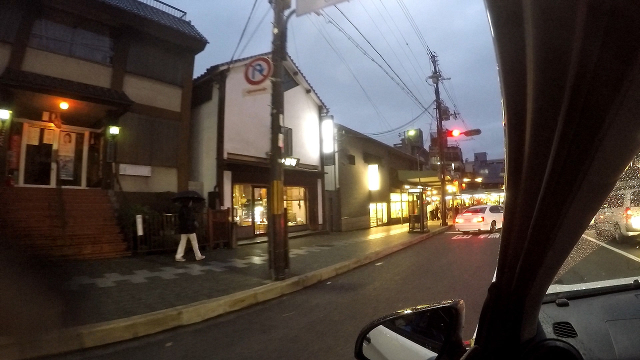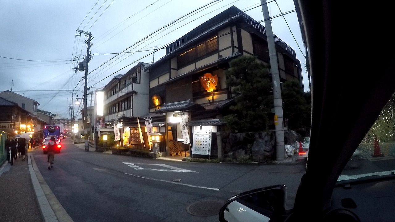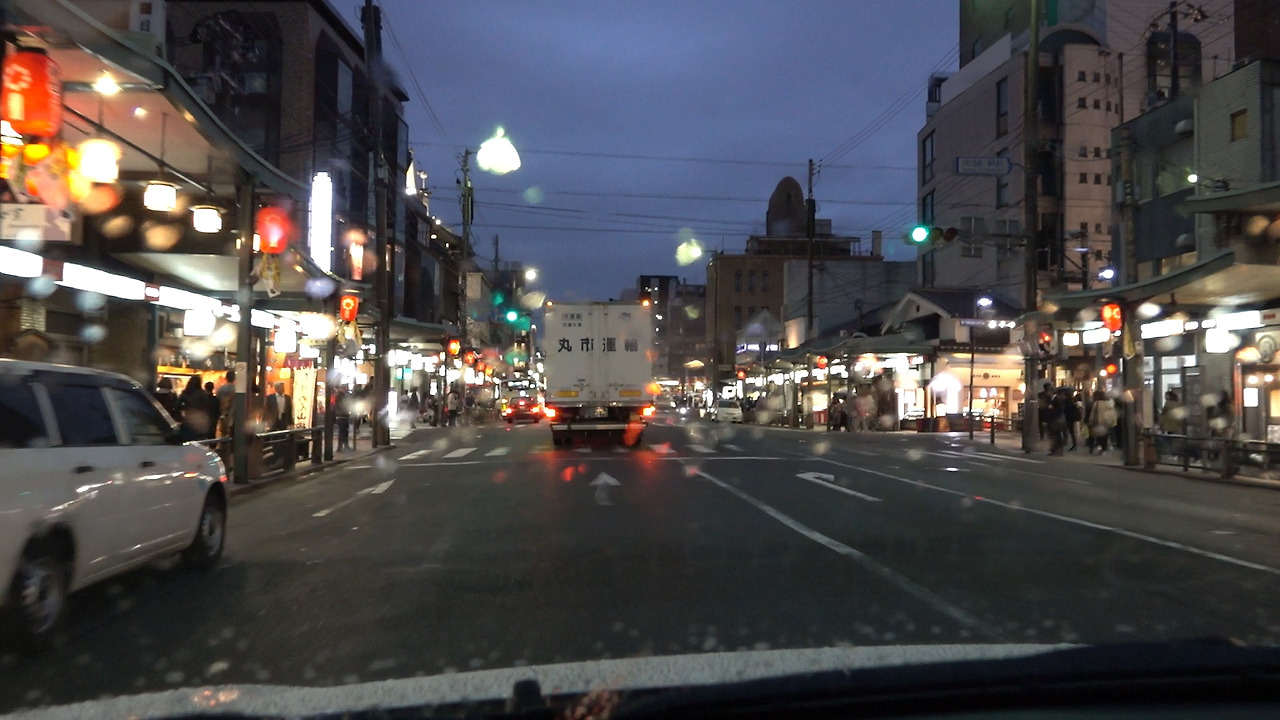저희는 다시 운전대를 잡고 기온 거리를 지나 차를 반납하러 갑니다.