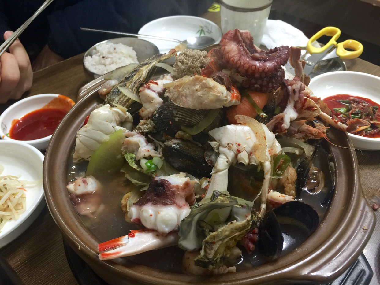 통영에서 유명한 맛집으로 통하는 '통영바다횟집'에 왔습니다. 해물탕 시켜서 먹었는데 기가 막힙니다!ㅋ