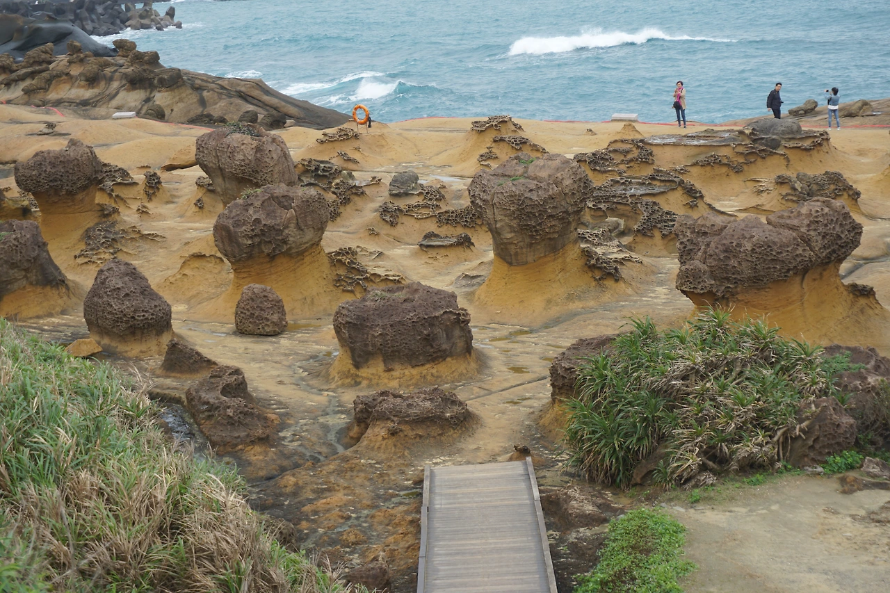 작은 곶에 조성된 이 예류지질공원은 오랜시간동안 침식과 풍화작용을 거치면서 자연적으로 형성된 곳으로 희귀 모양의 바위들이 해안에 모여있는 공원입니다.