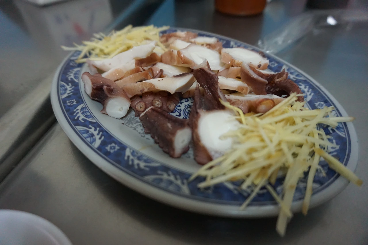 해물라면, 문어숙회, 돼지고기 삶은거 해서 넷이 먹었는데 490NT (약 1만 8천원)