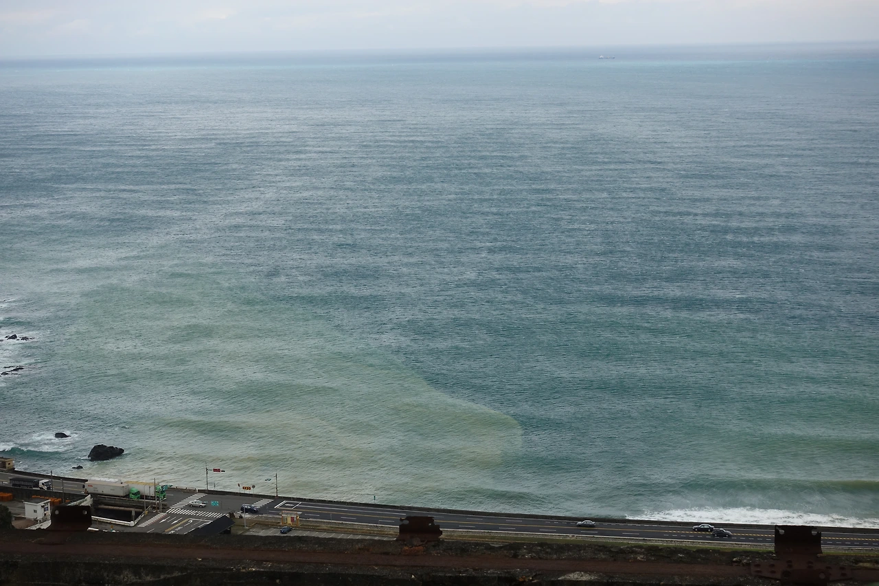 이 물들이 좀 전에 봤던 바다로 흘러들어가면서 해안가에 푸른색이 아닌 황토색의 바다를 살짝 보여준답니다