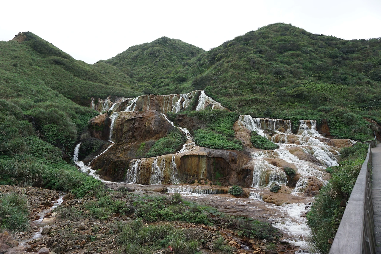 바위 사이사이로 흐르는 이 물들 속에 금색을 띄는 광물질이 있어 이렇게 황금색을 낸다고 하네요~