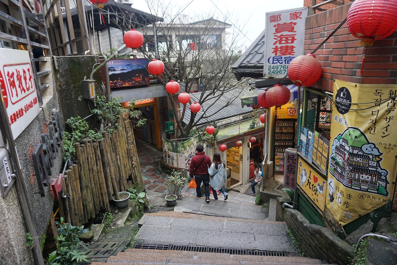 사이사이 가옥들과 상가들이 조화롭게 공존하는 지우펀의 모습을 볼 수 있어요^^