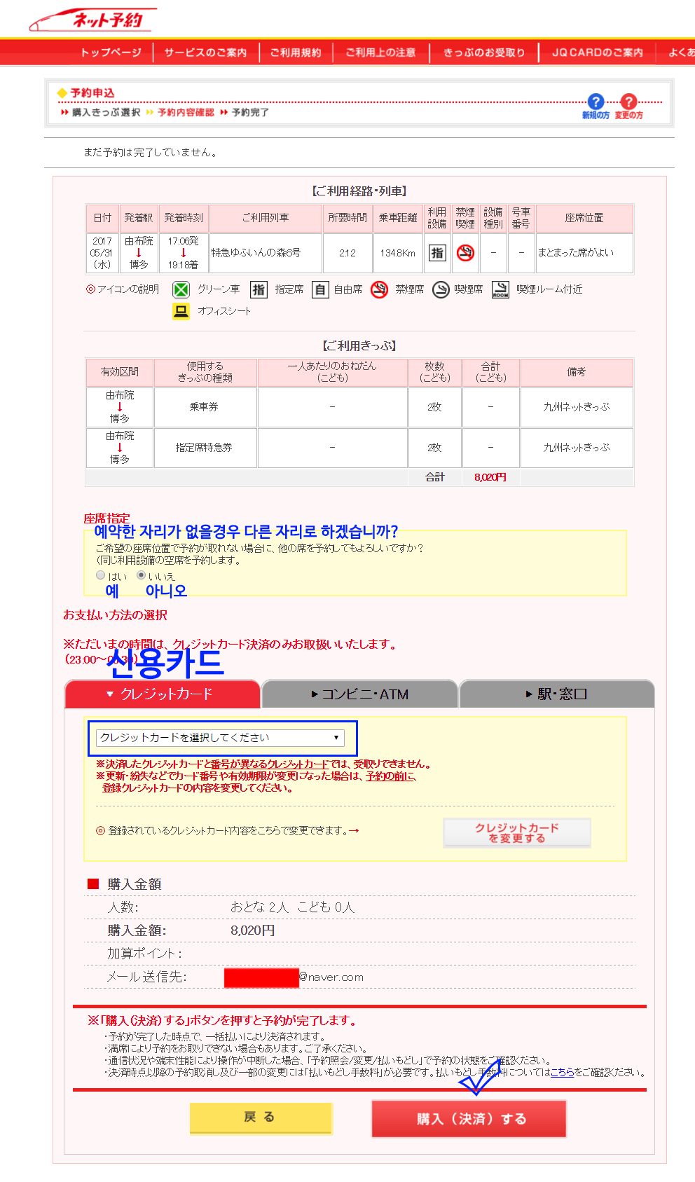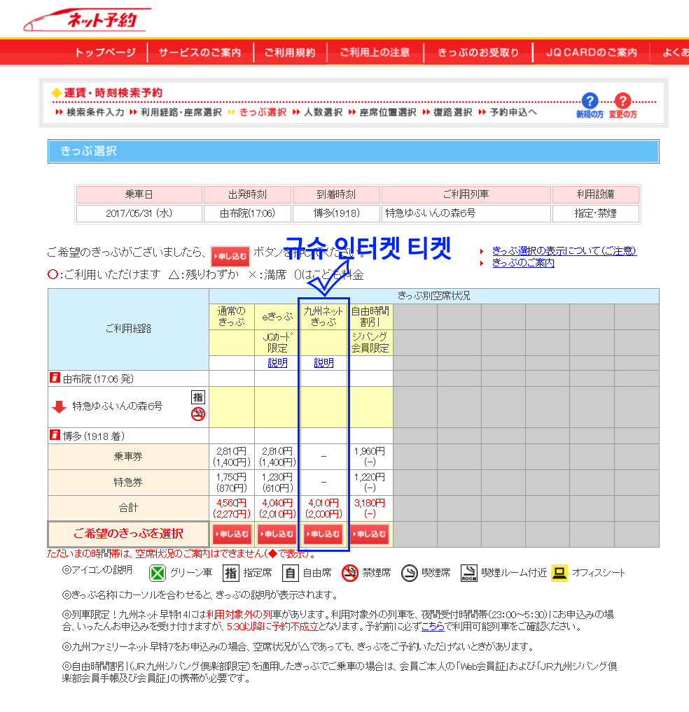 인터넷으로 예약시 세번째, 큐슈 인터넷 티켓이 가장 쌉니다.