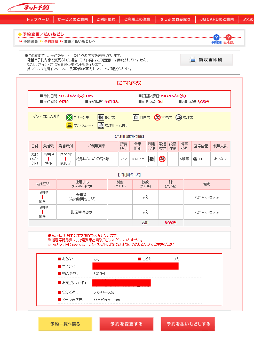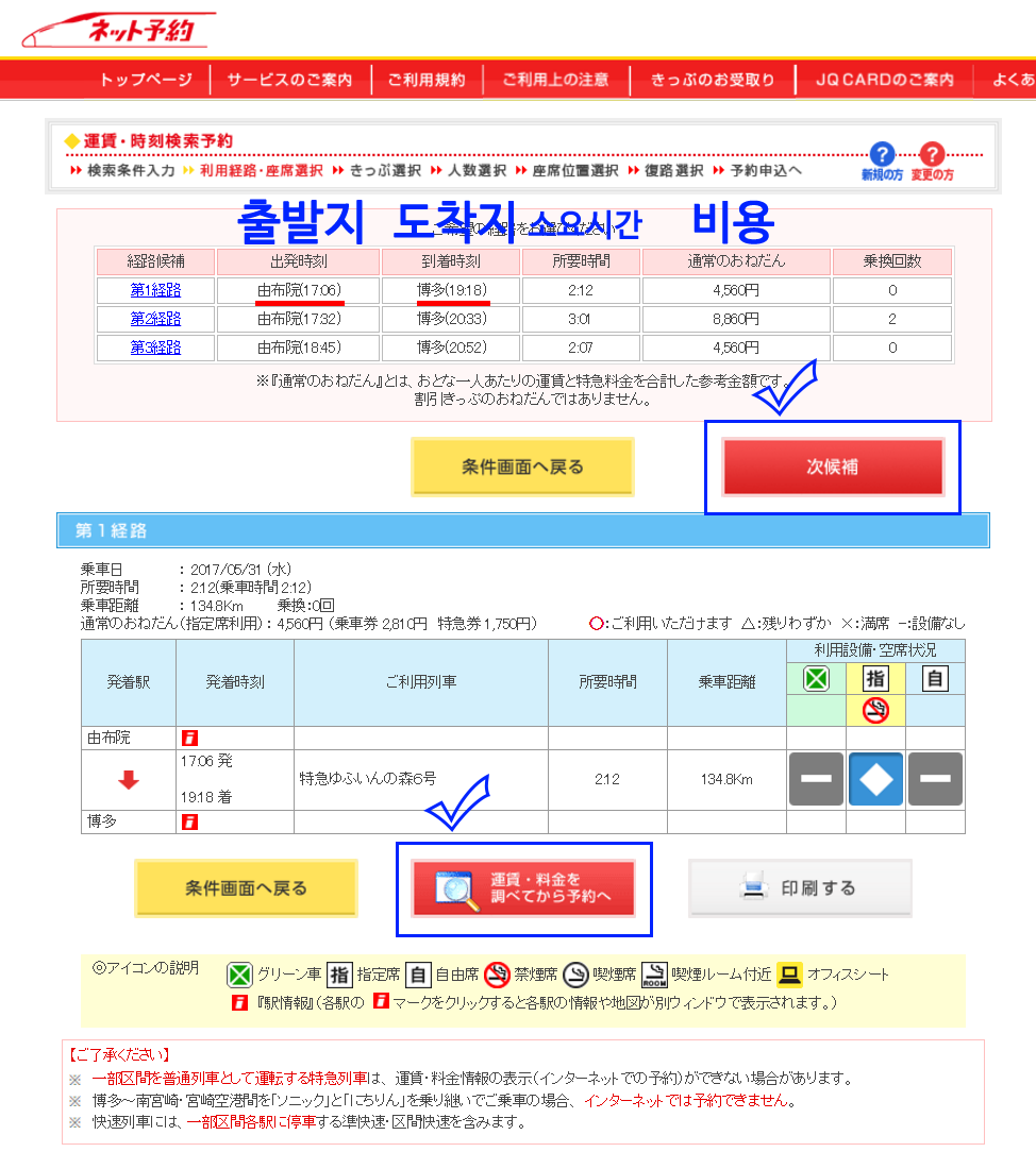 저는 부득이하게 유후인에서 하카타 가는 화면으로 설명하겠습니다.