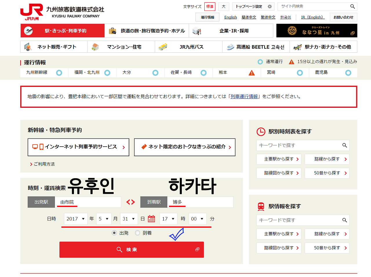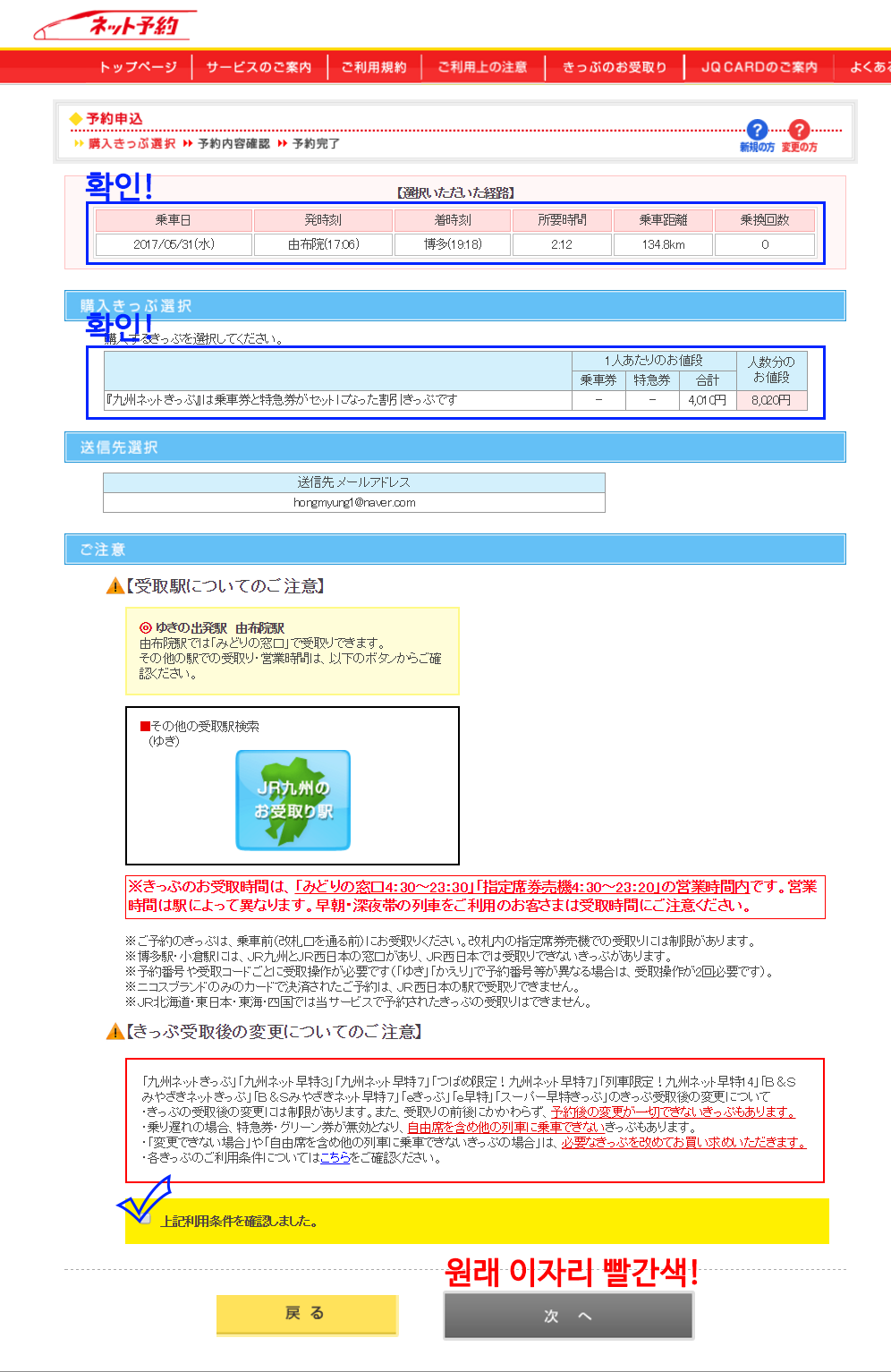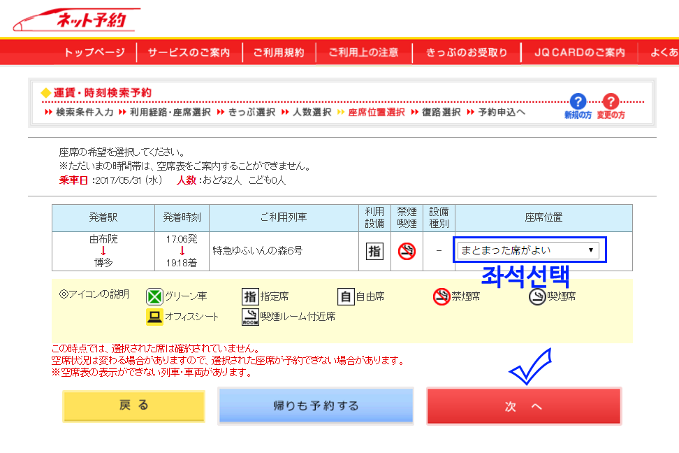 하카타에서 유후인가는 기차는 반대로 체크하고 진행하시면 됩니다.