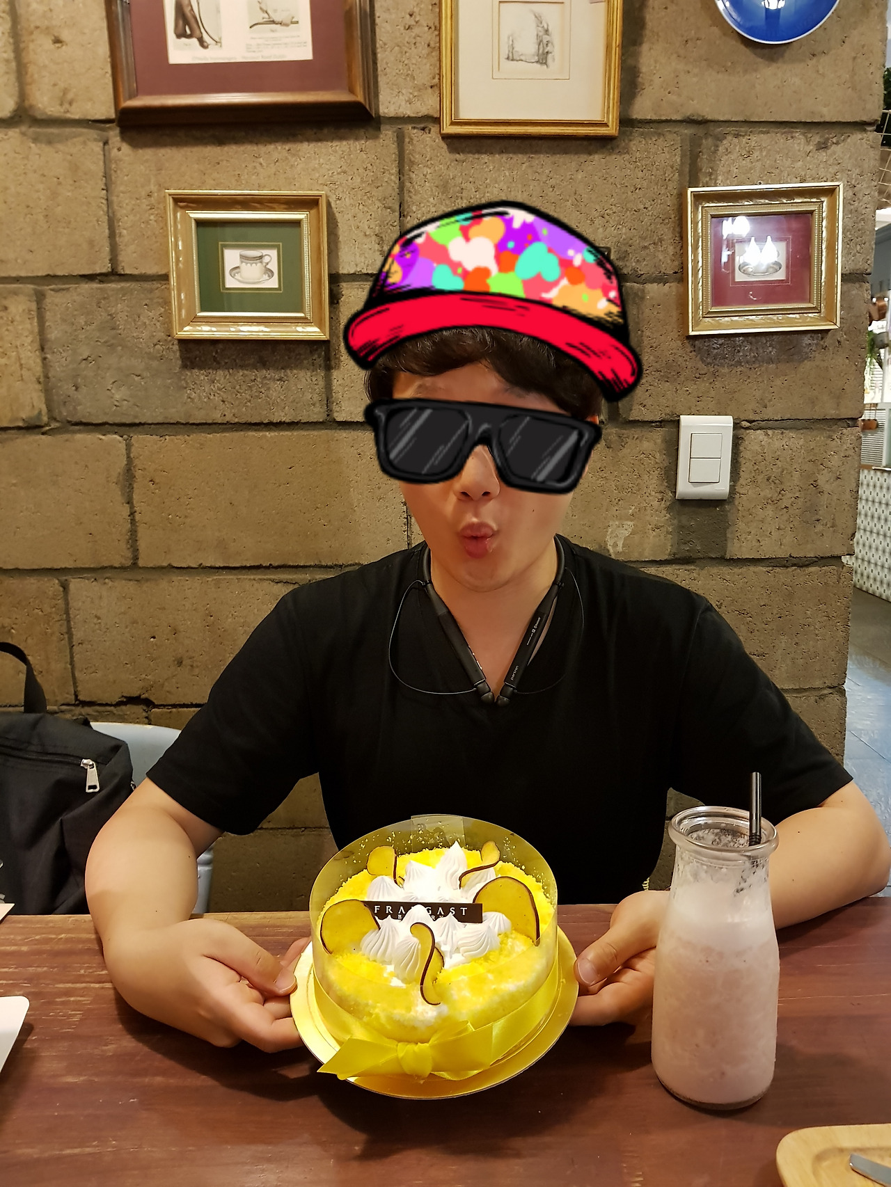 밖에서 사온 케잌과 에프스토리에서 주문한 딸기바나나쥬스를 먹었습니다.
