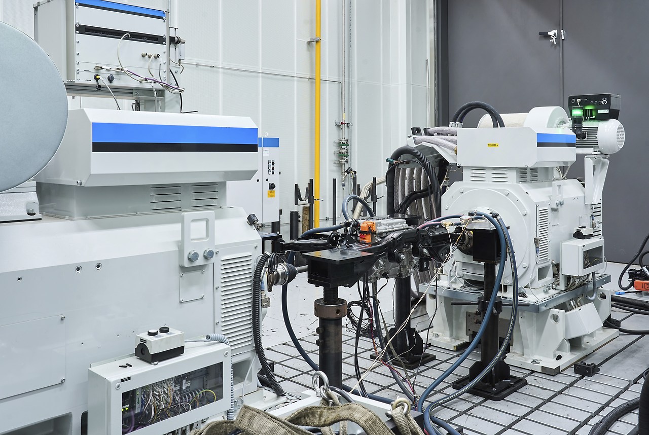 현대차그룹 남양기술연구소에 위치한 전기차 동력계 시험실은 모터, 인버터, 감속기로 이뤄진 PE 시스템의 품질을 높이고 성능을 강화하기 위해 존재한다. 이곳은 각 시험실에 쓰이는 동력계 장비의 개수에 따라 크게 ‘1축 시험실’과 ‘2축 시험실’, 그리고 ‘4축 시험실’로 나누어 운영 중이다. 각기 다른 구조의 시험체를 동력계 시험 장비에 장착해 성능을 측정하고 있으며, 시험체는 동력계 장비가 많아질수록 실제 자동차에 가까운 형태를 띤다.