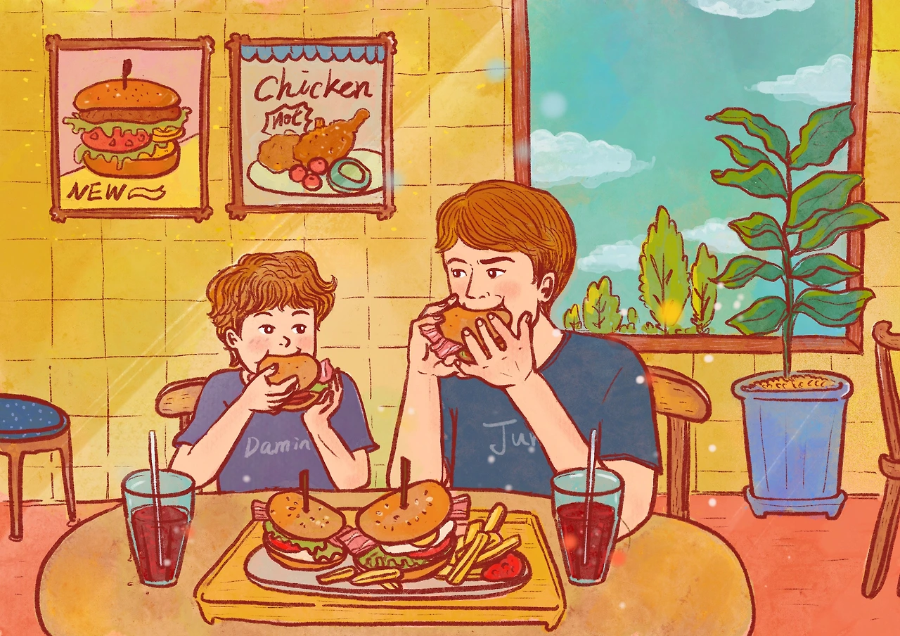 저희 신랑과 아들의 모습을 그리고 있어요.