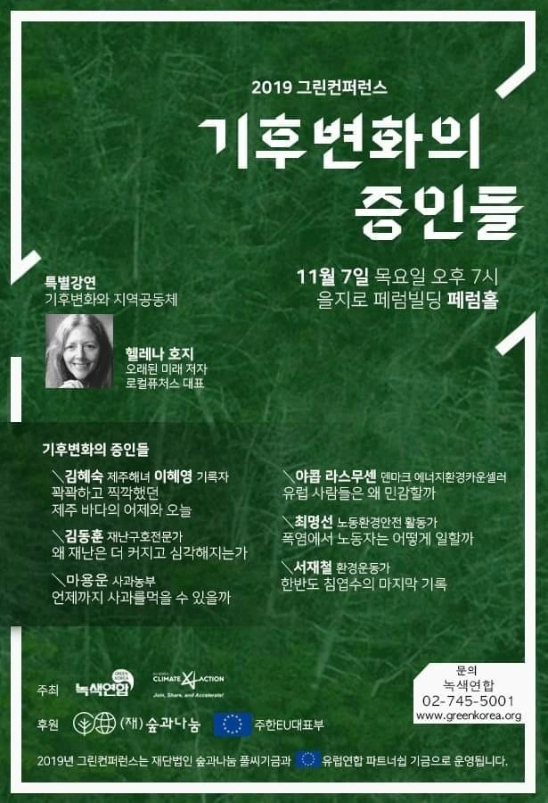 11월 7일 ‘기후변화와 증인들’이라는 콘퍼런스에 참여한 적이 있다.