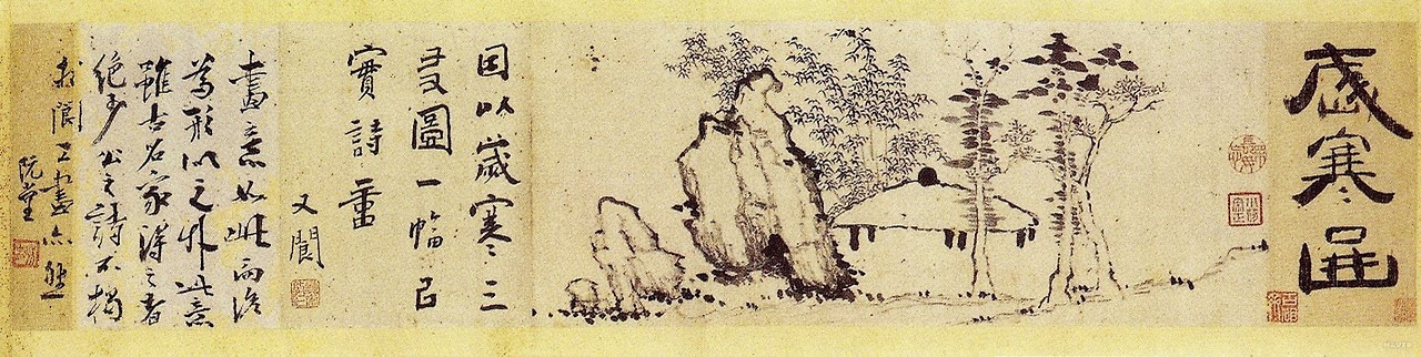 세한도는 옆에는 작은 글씨가 적혀 있다. 세한도라는 제목 옆에 조그마한 글씨로 우선시상이라고 적혀있다. "우선(이상적), 이거 보게"라는 뜻이다. 이상적은 이 그림을 청나라로 들고 와 여러 학자들의 제화시를 받아왔다. 총 16명의 학자들이 제화시를 지어 주었다. 그리고 맨 앞에는 장목의 글씨로 표지 제목을 달았다.
