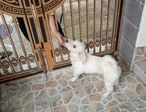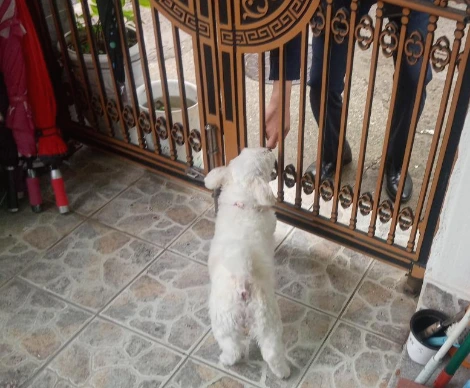 또 잠시 후, 7시 50분쯤이면 2층 현관문을 열고 나오는 아롱 언니의 발자국 소리를 듣습니다. 귀를 쫑긋하고 듣고 있던 저 아롱이는 또 대문 앞으로 달려갑니다. 그리고 조금 전 아롱 오빠가 출근할 때처럼 대문 앞에 코를 바짝 들이대고 언니를 기다립니다. 아롱 언니도 대문 사이를 손을 넣어서 저 아롱이의 콧등과 턱을 만져주고, 머리도 쓸어주면서 "아롱아~ 언니 갔다 올게~"하고 다정한 목소리로 인사를 합니다.