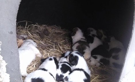 푹신한 짚이 깔린 집으로 옮겨진 9마리의 강아지들... 저 아롱이를 찾아보세요~